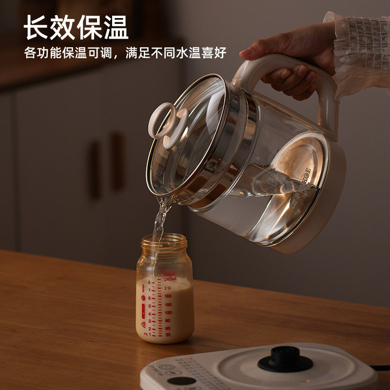 小熊全玻璃恒温养生壶纯玻璃调奶养生烧水壶办公室煮茶壶电热水壶