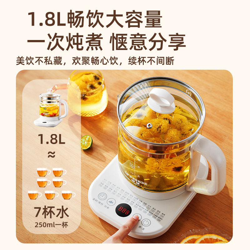 九阳全玻璃养生壶炖煮一体煮茶器小型办公室新款花茶恒温电热水壶
