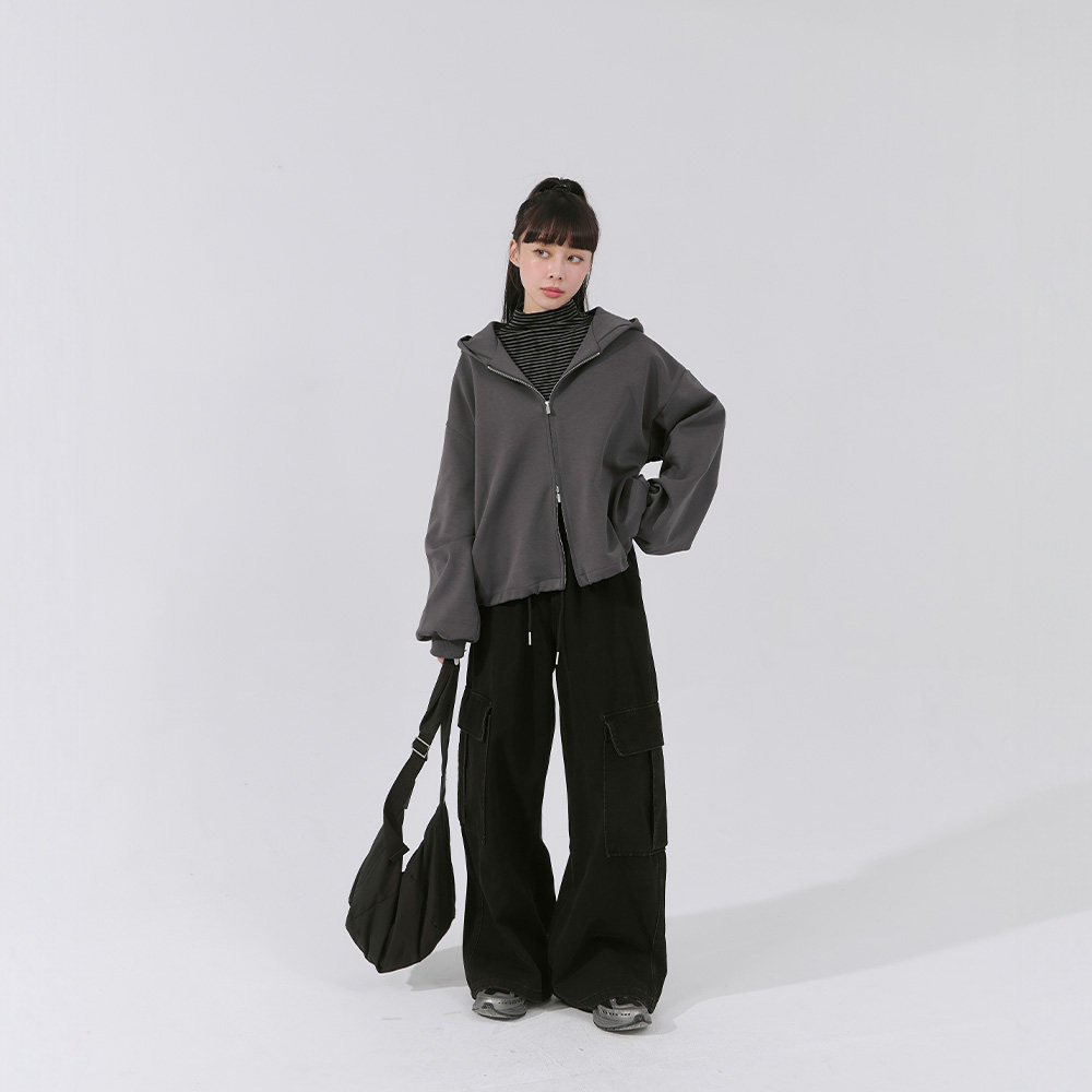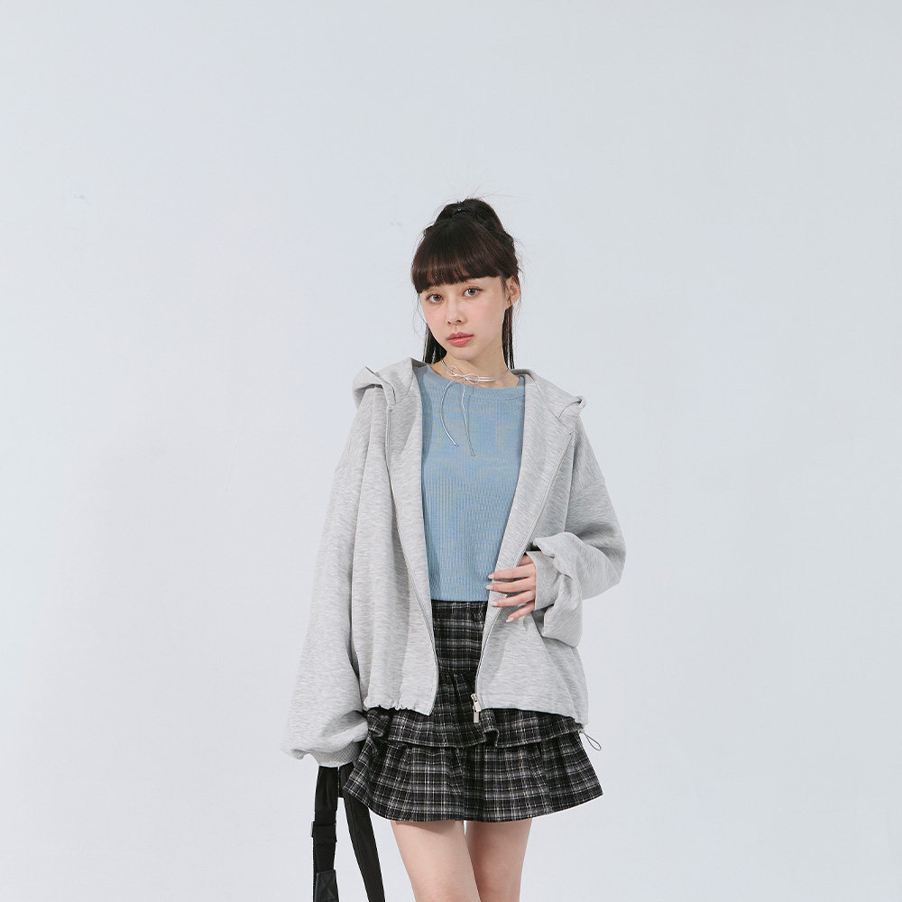 QUEENSHOP 2025秋冬新品女装休闲下摆抽皱造型连帽外套02071661