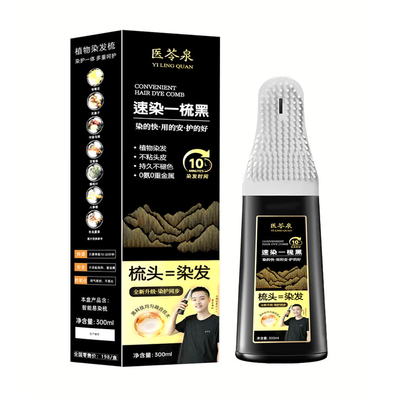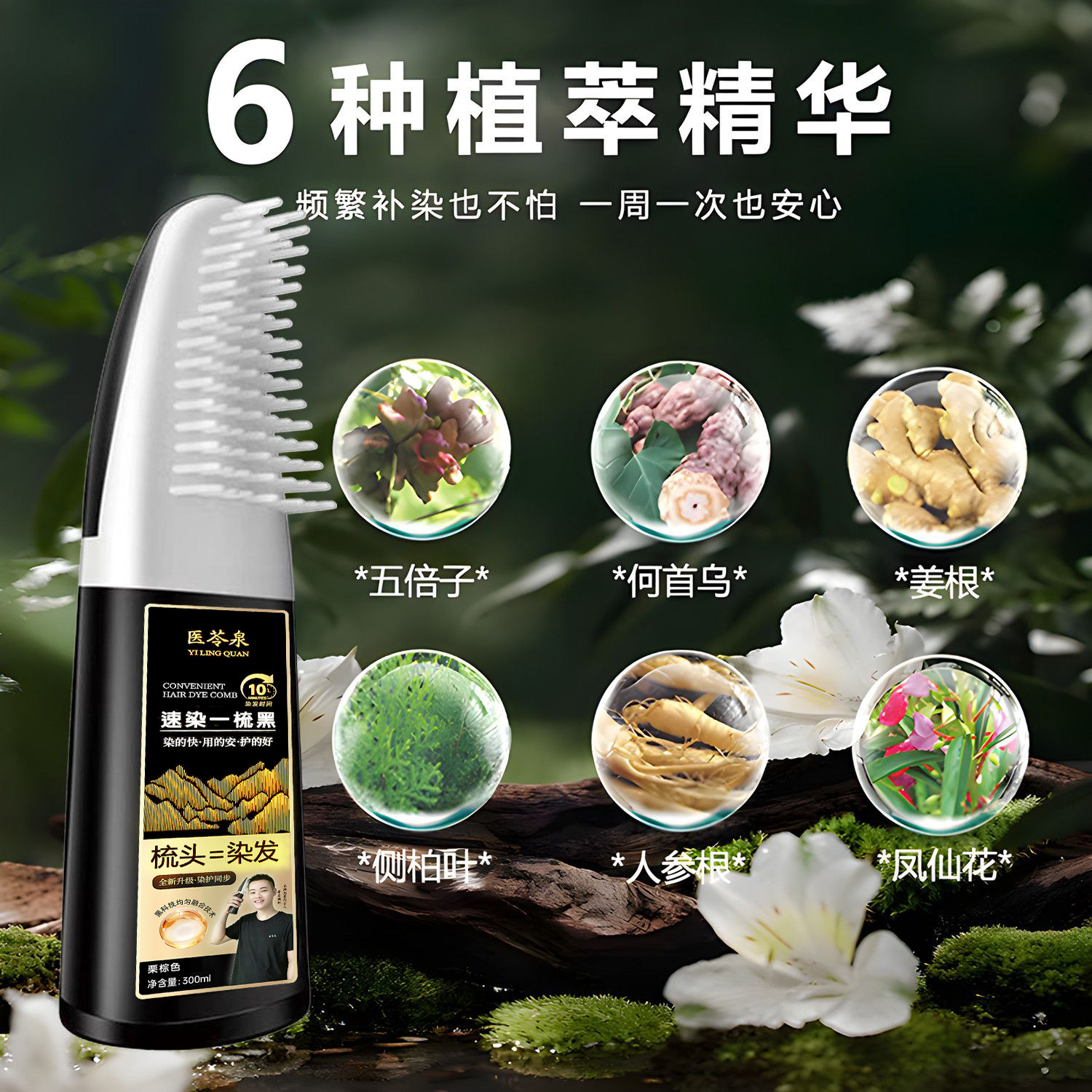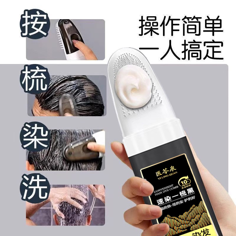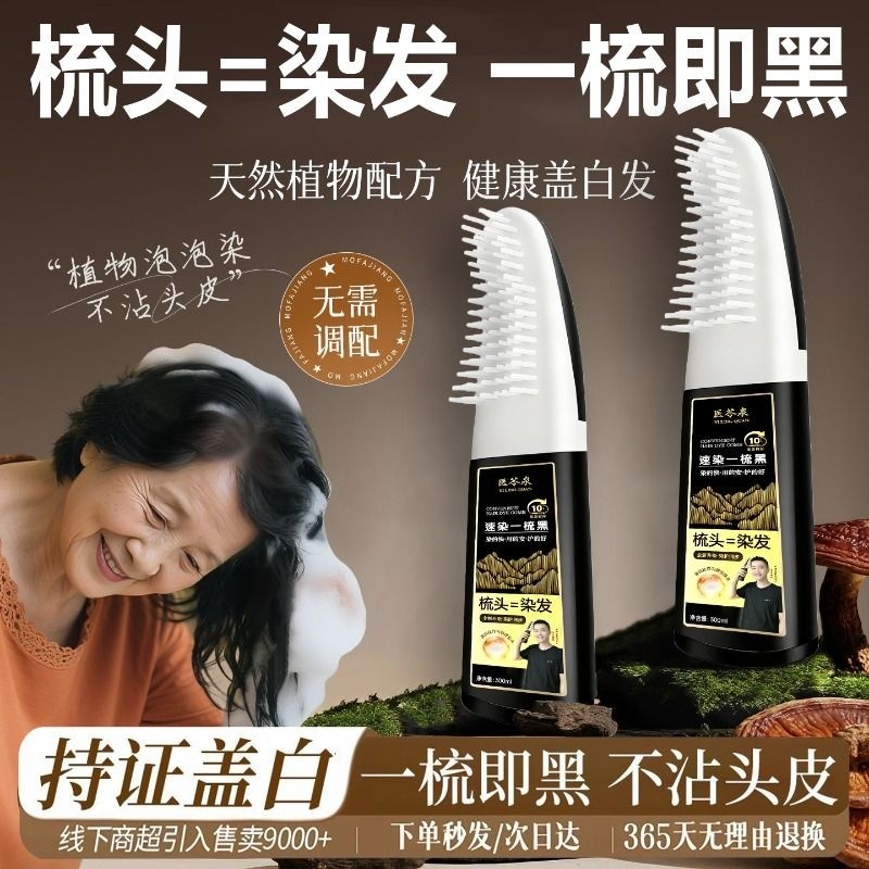 一梳子黑色染发剂植物泡泡中老年人不沾遮盖白发洗纯染发膏黑茶色