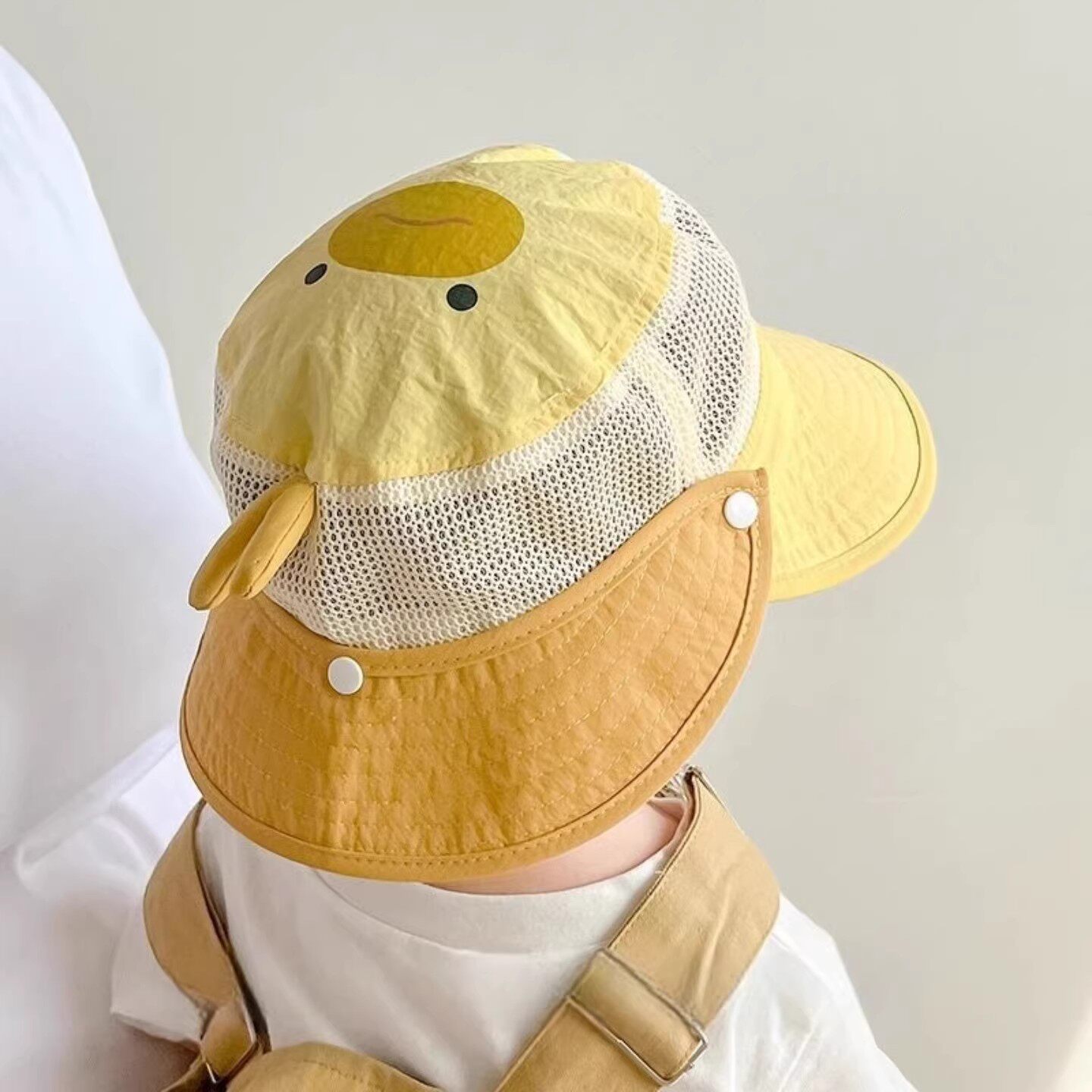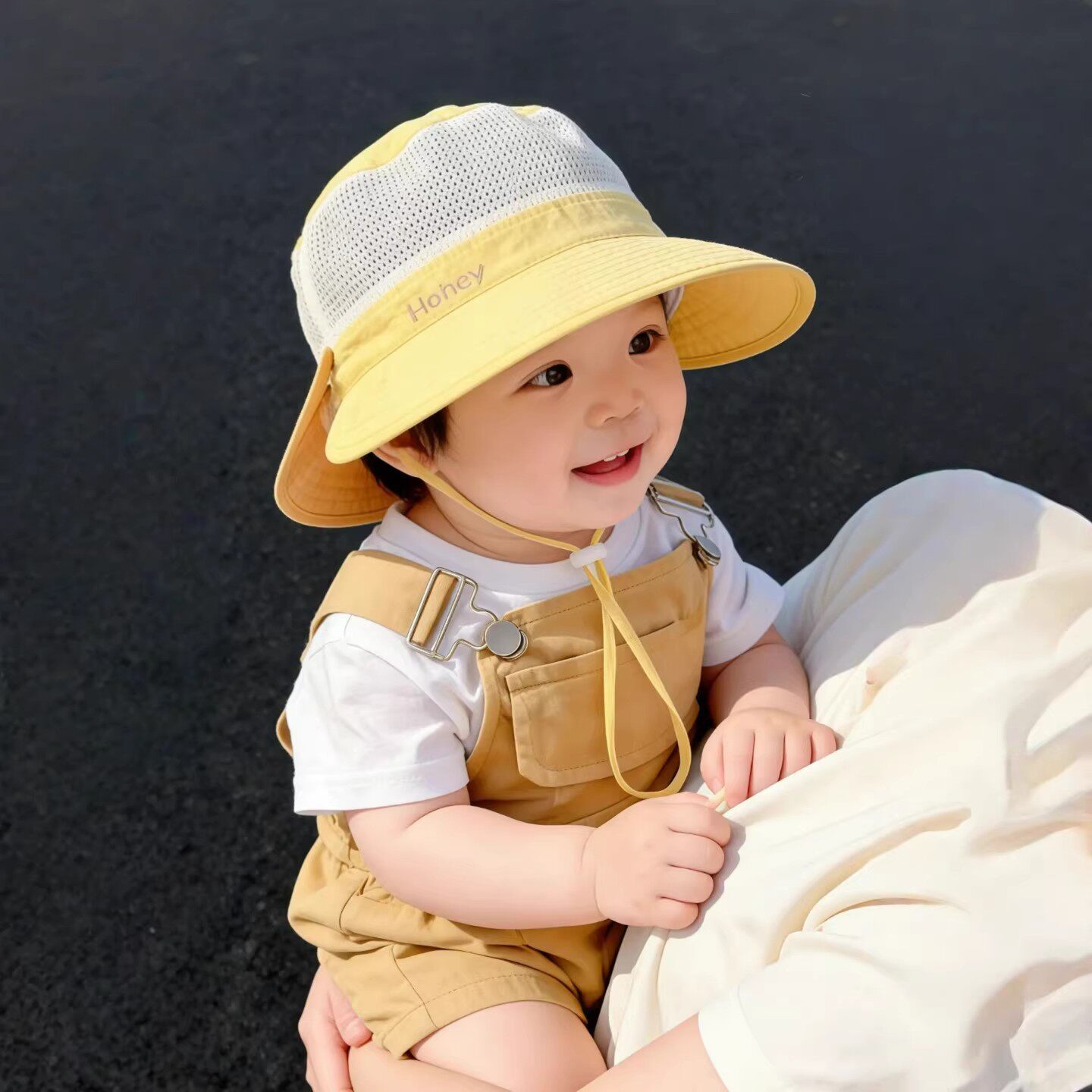 婴儿帽子夏季遮阳帽渔夫帽男童女宝宝网大檐可拆披肩儿童透气速干