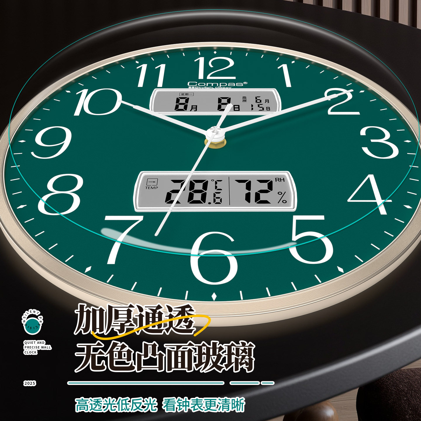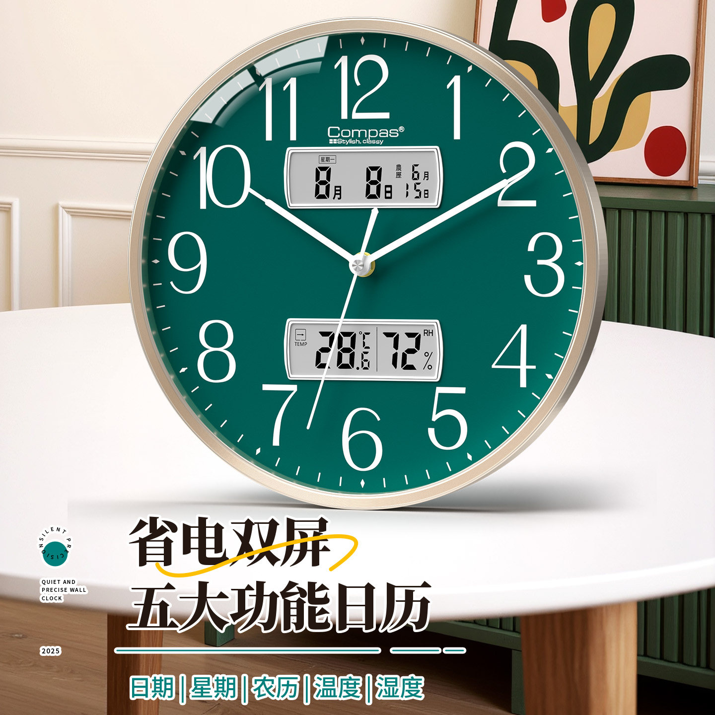 新款大吉大利客厅家用时尚双日历静音挂钟万年历现代温度钟表时钟
