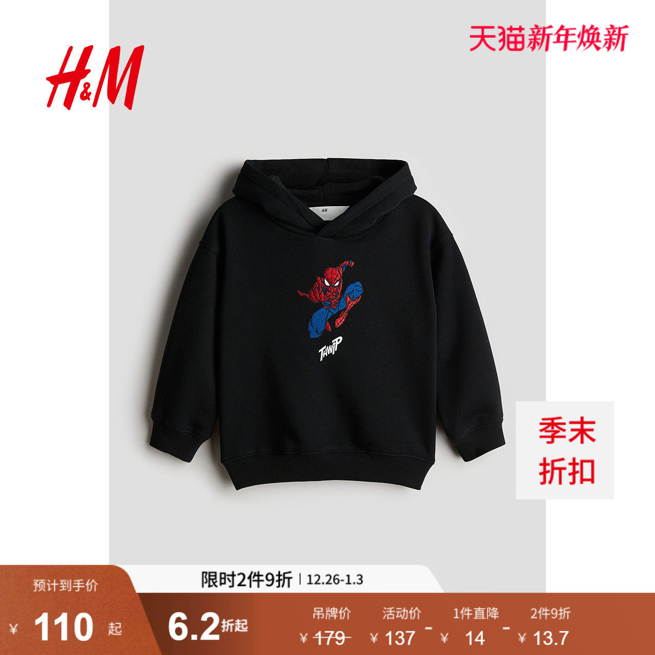【漫威】HM童装儿童男童卫衣冬季蜘蛛侠卡通印花连帽衫1063809