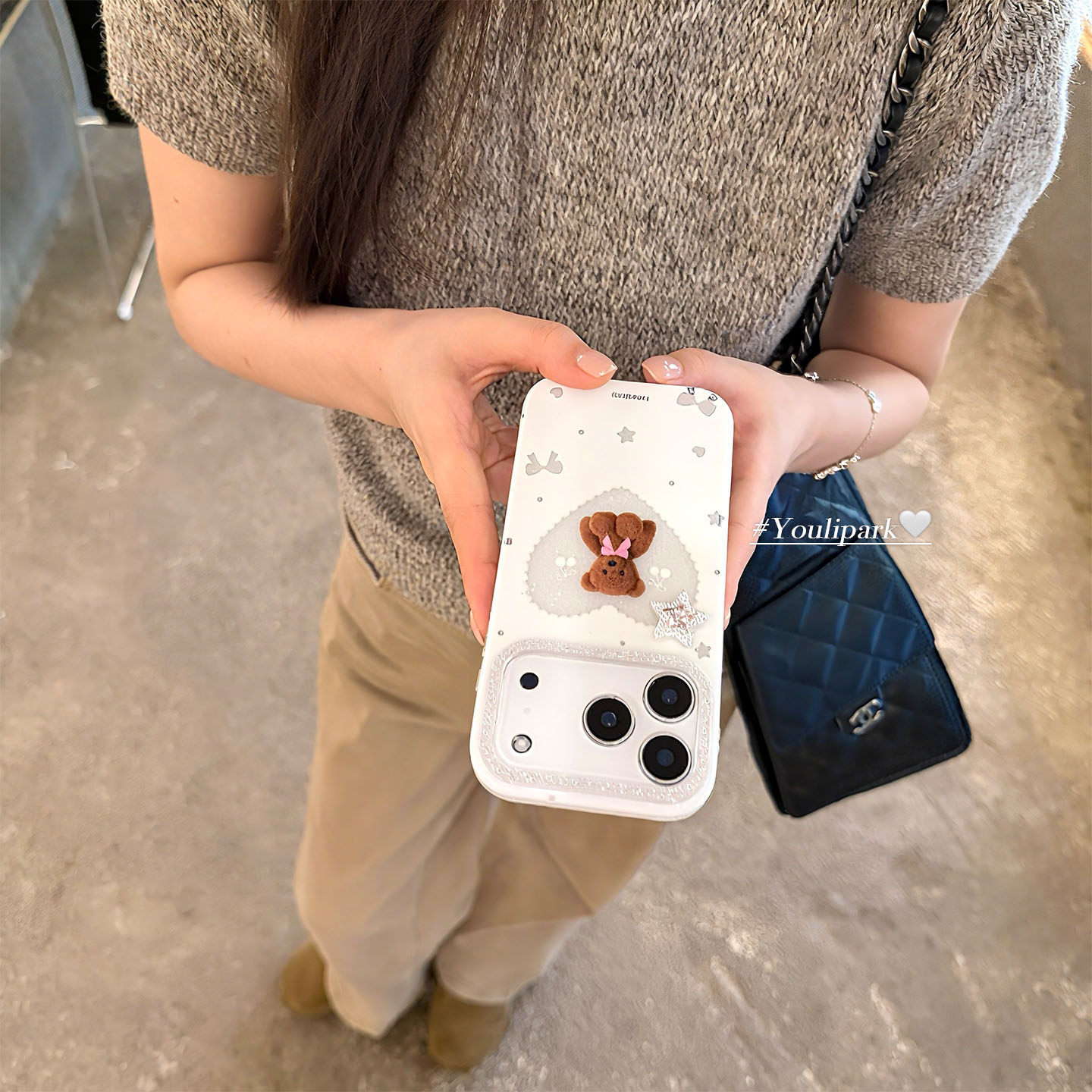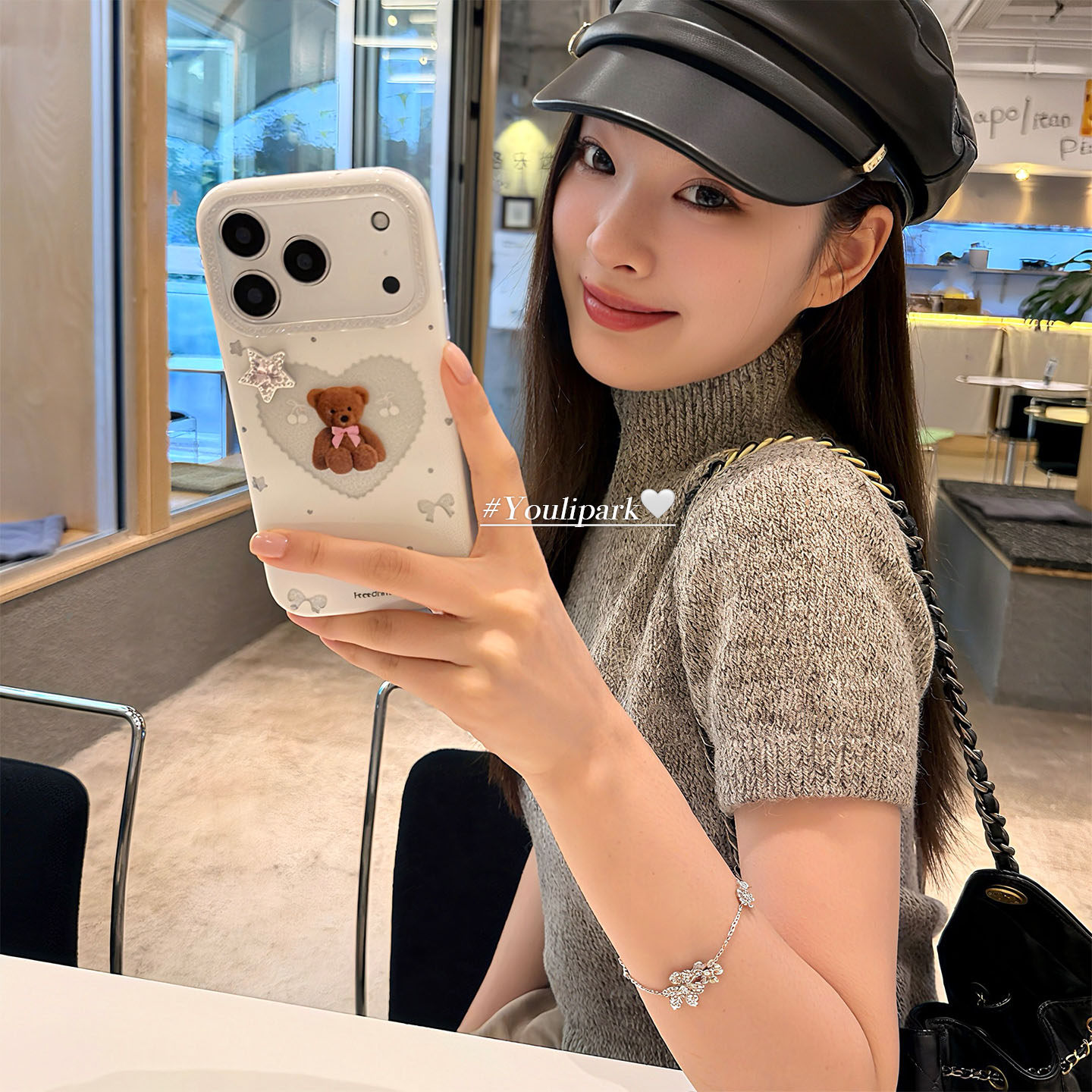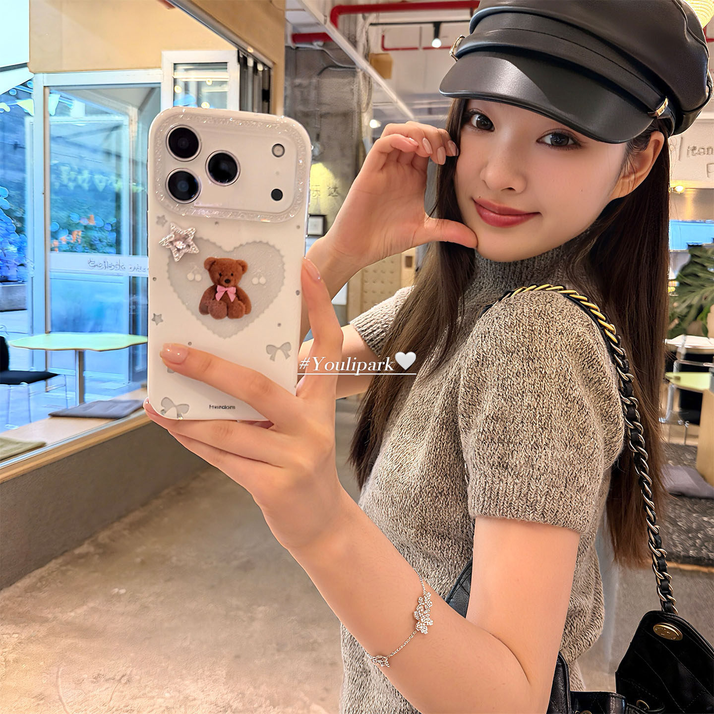 由里公园ins可爱闪钻星星蝴蝶结爱心小熊17适用17pro苹果17ProMax手机壳iPhone16全包14新款16Promax保护套女