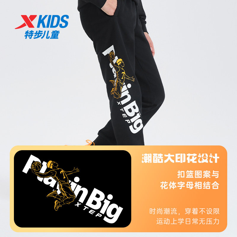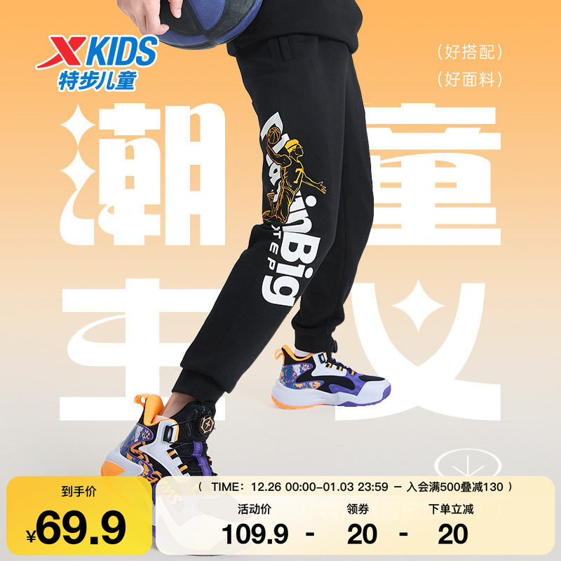 特步童装秋冬新款儿童运动裤男童小中大童潮流柔软针织松紧腰长裤