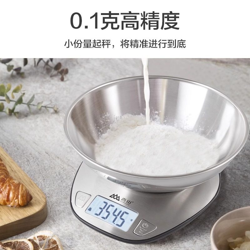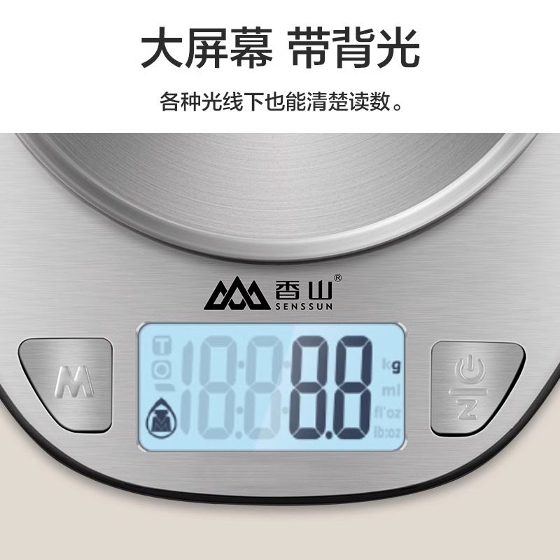 香山厨房秤电子秤家用克称烘焙称量器精准称重食物秤不锈钢面精度