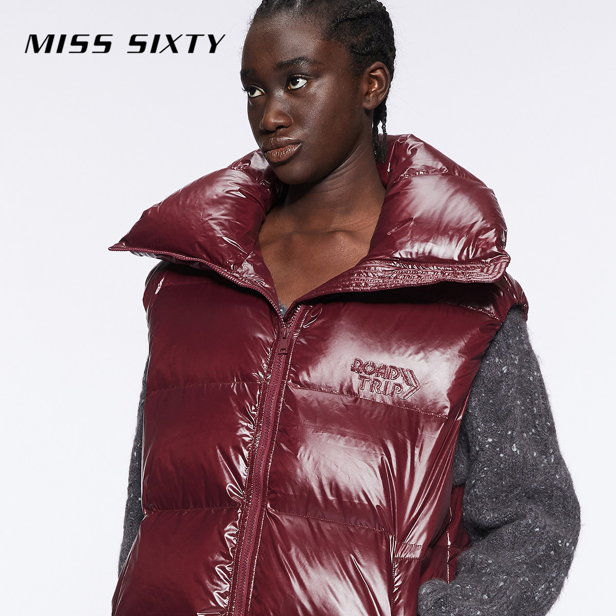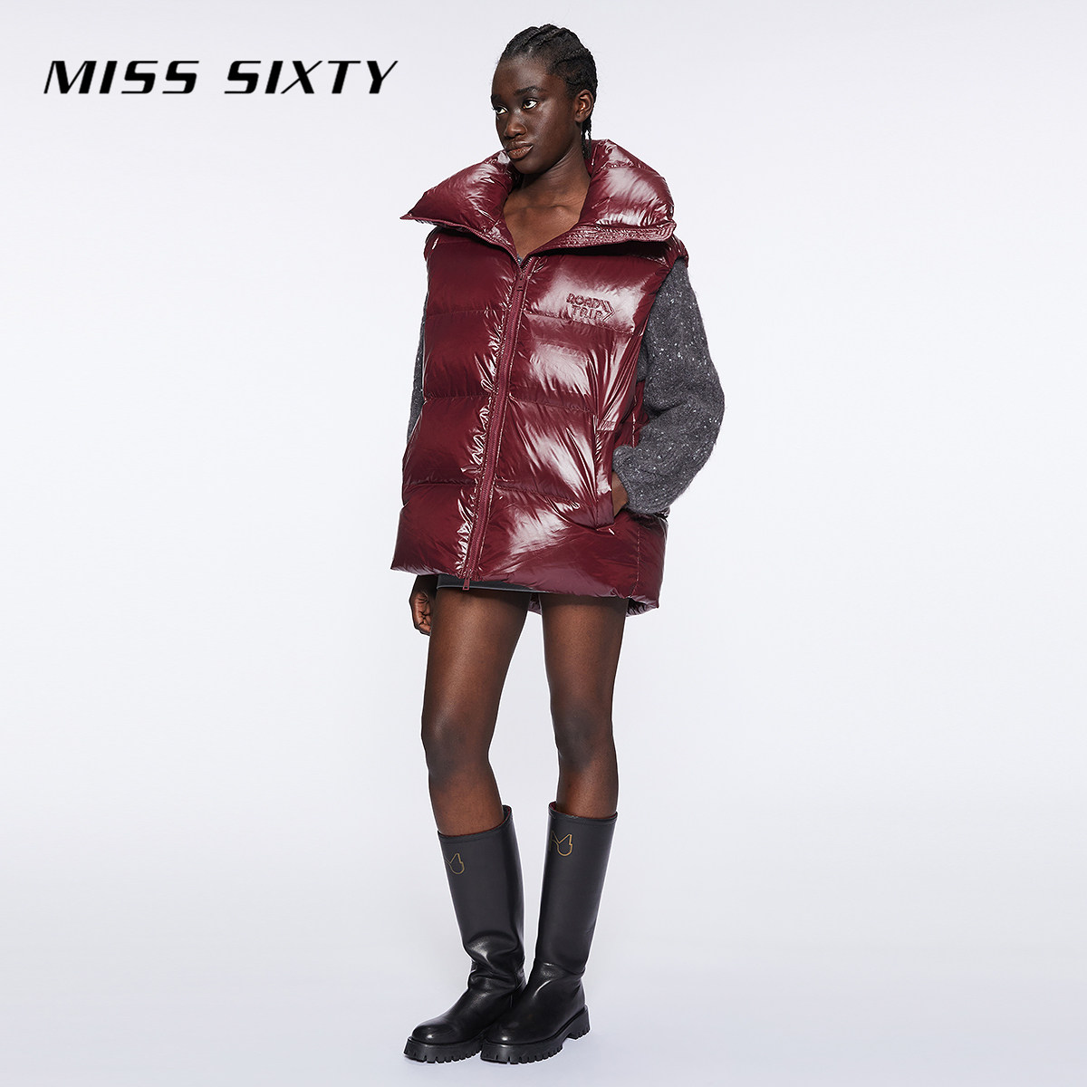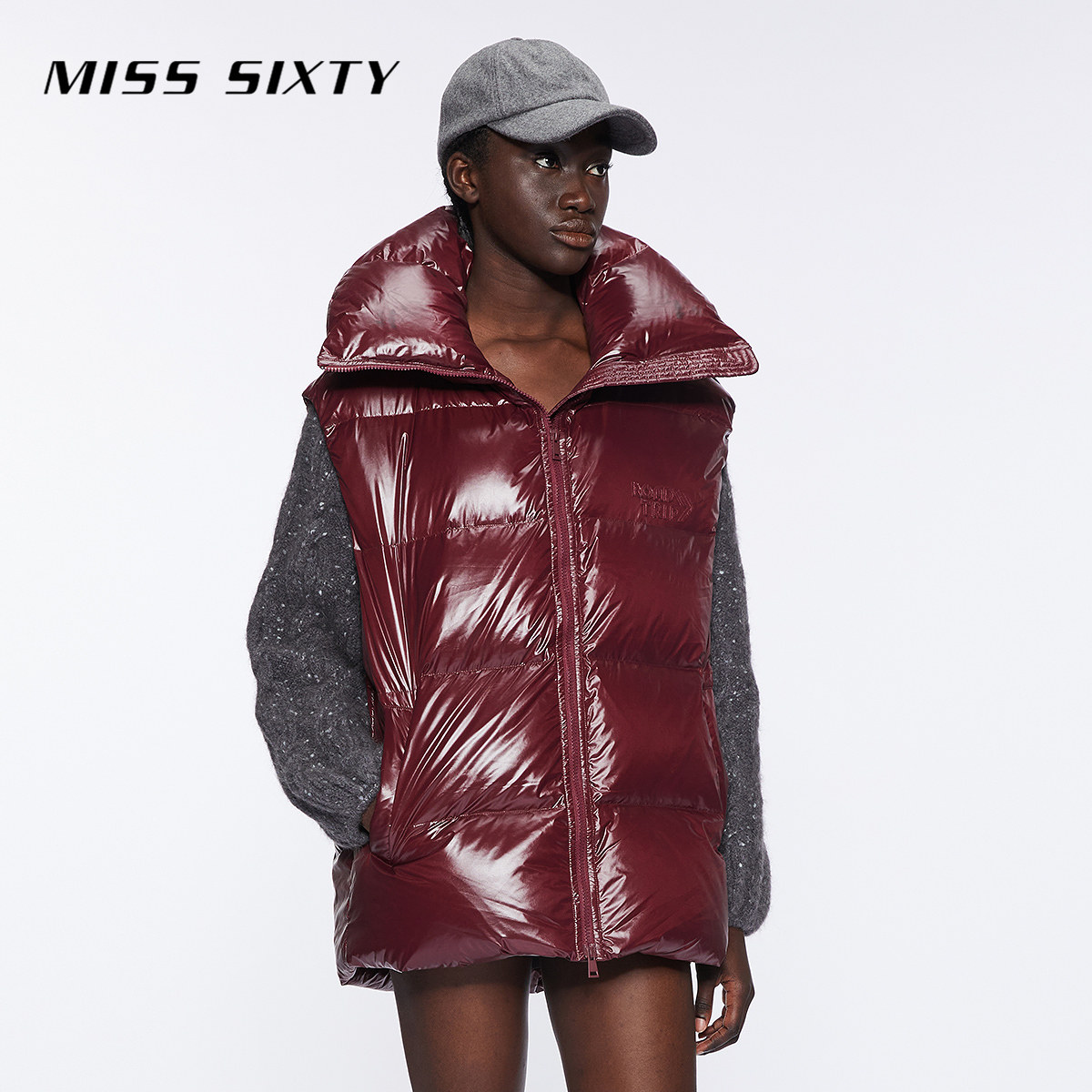 【新年穿搭】保暖90鹅绒Miss Sixty羽绒背心女宽松马甲红色面包服