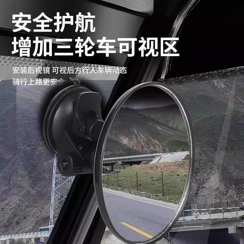 吸盘后视镜大视野凸面防雨三轮快递电动车通用倒车辅助圆盘内视镜