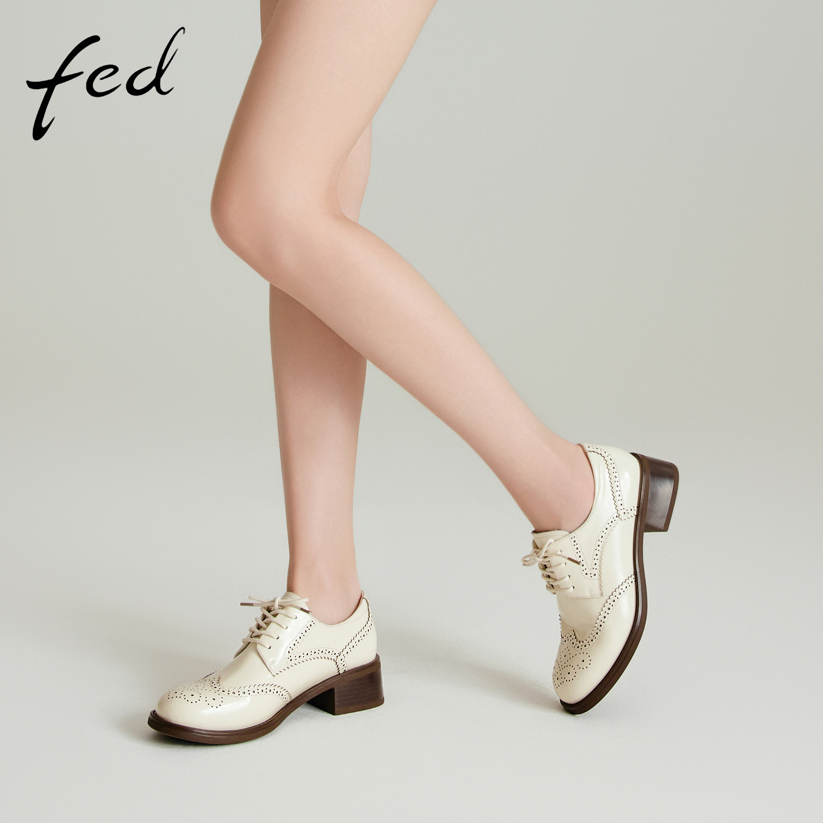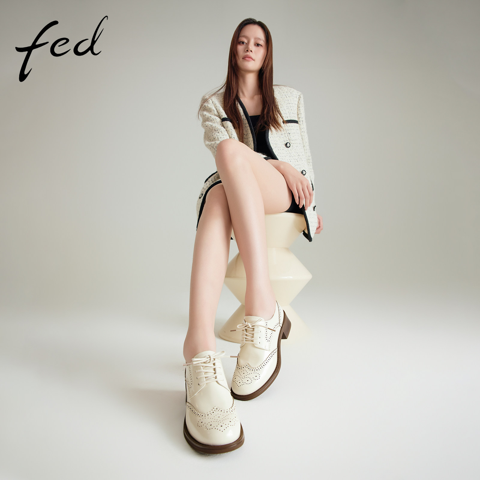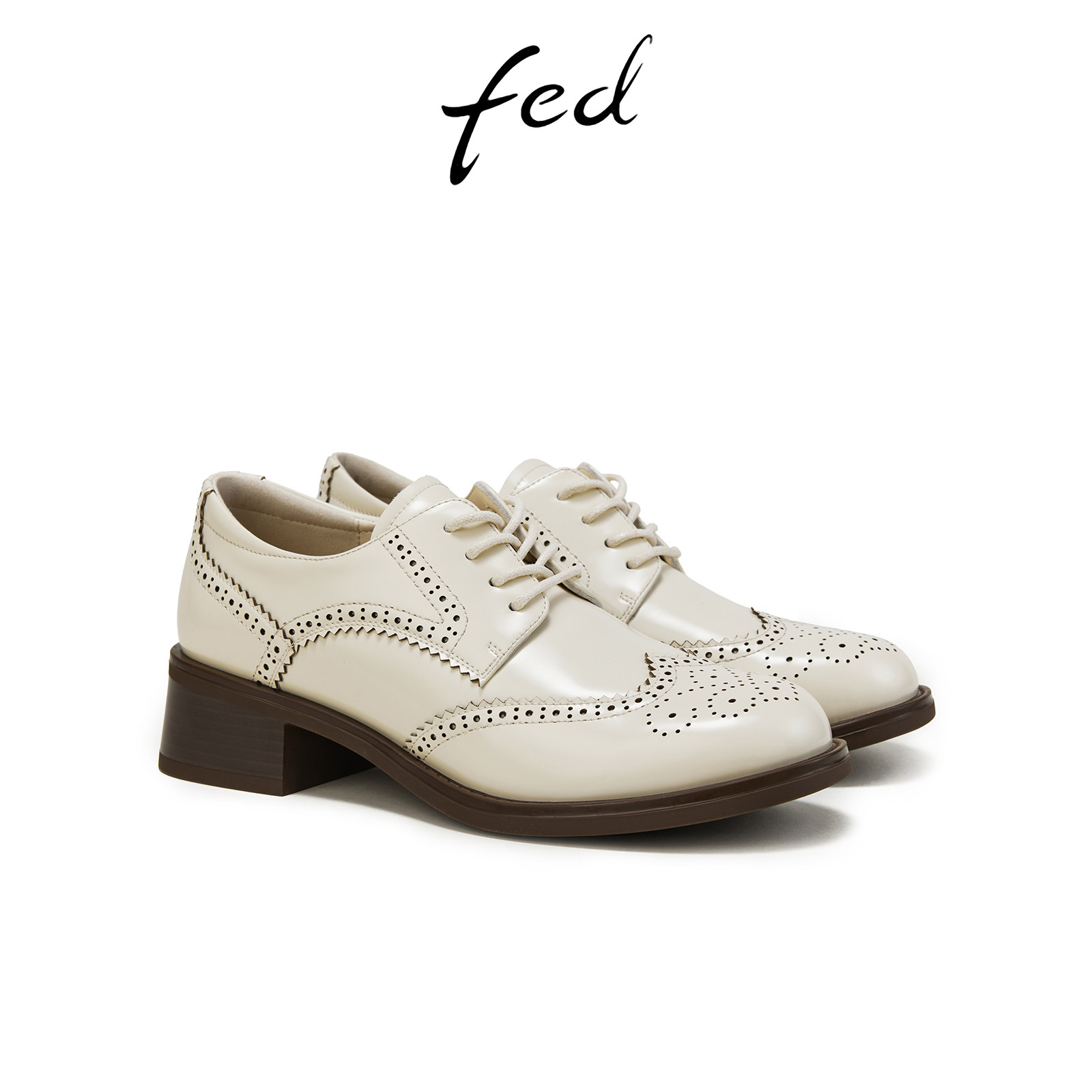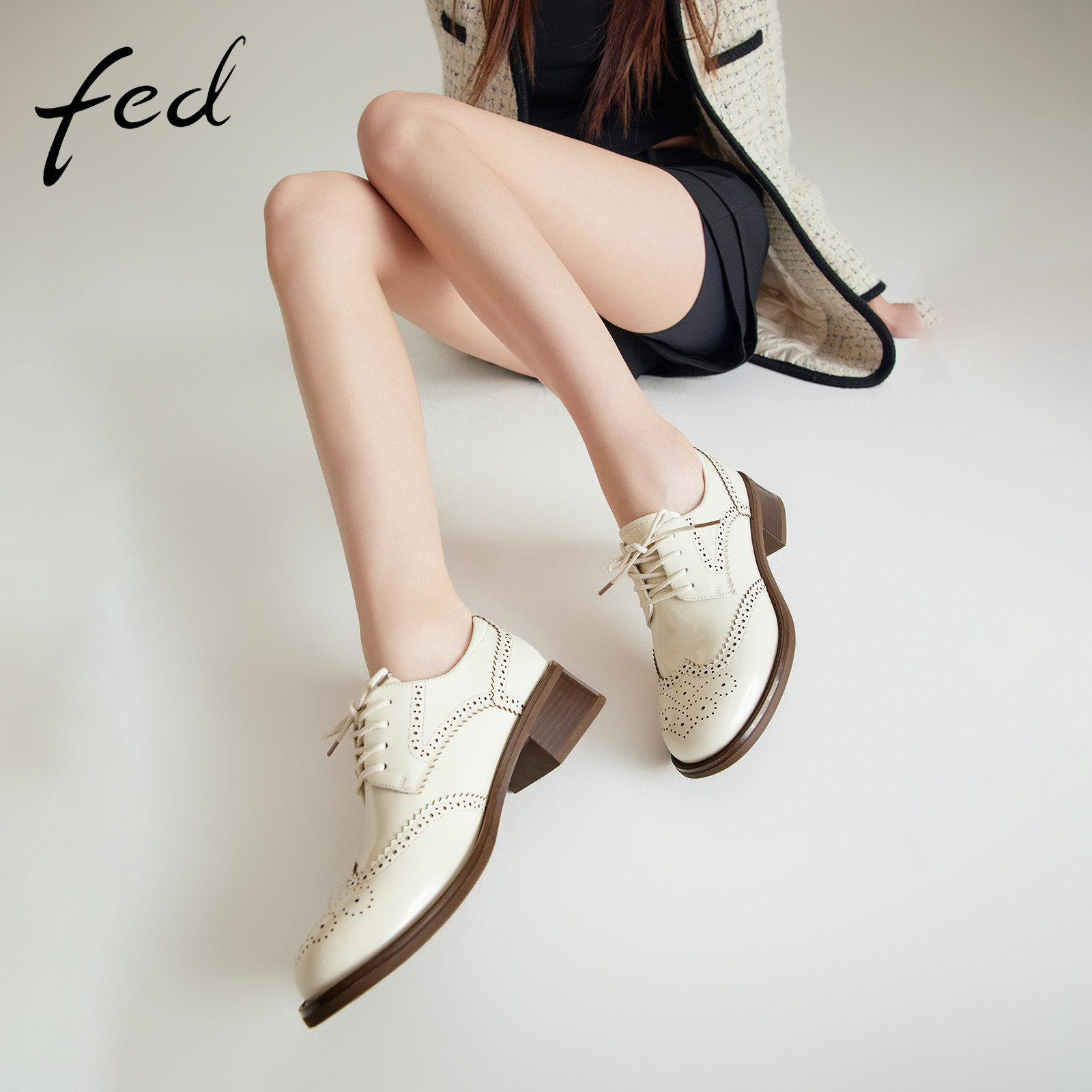 fed白色布洛克鞋春季新款女鞋雕花小皮鞋牛津鞋女款D1228-ZCA788