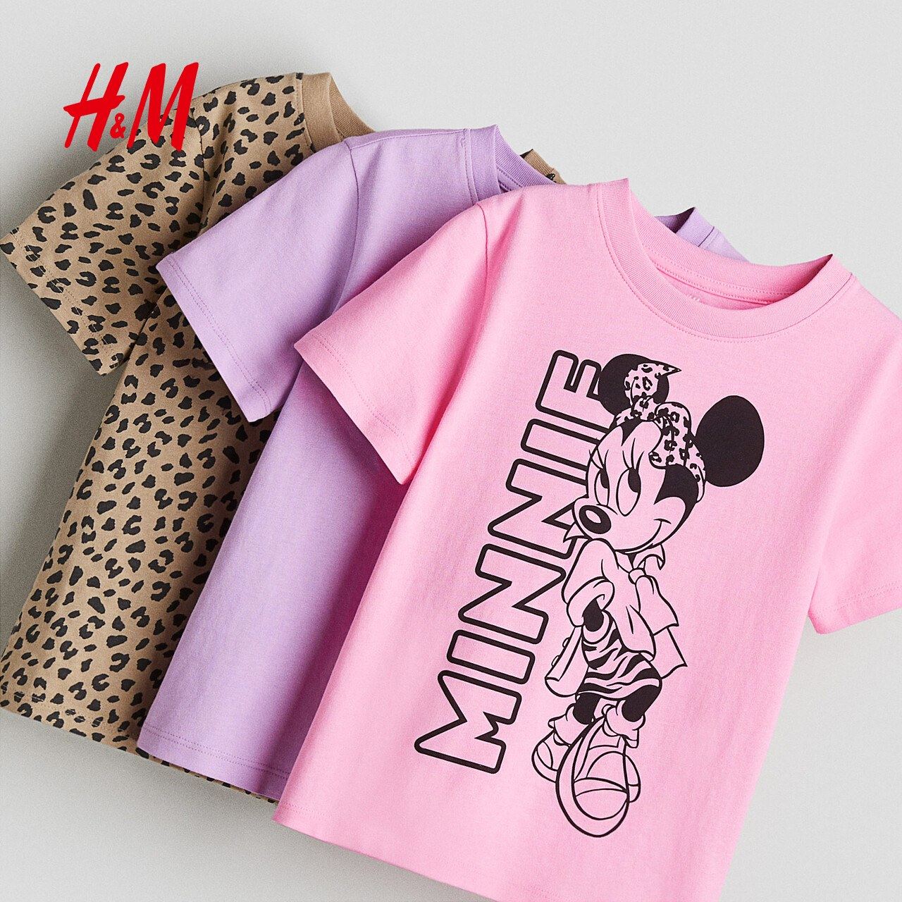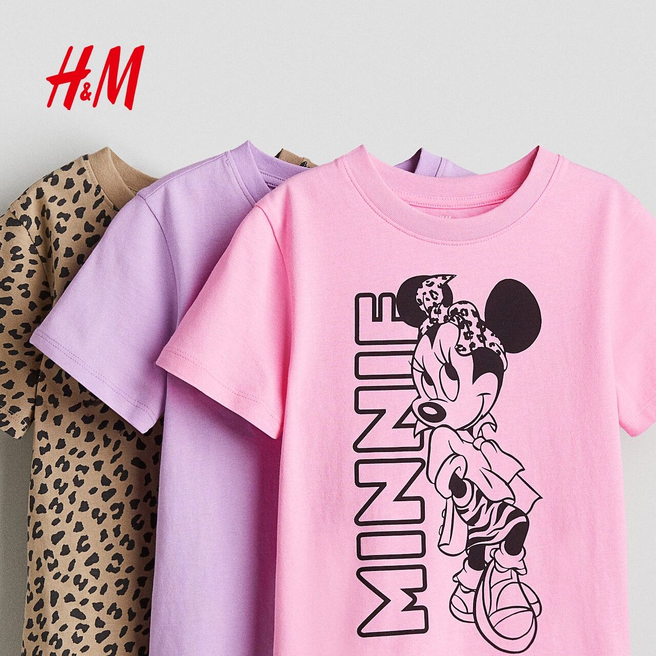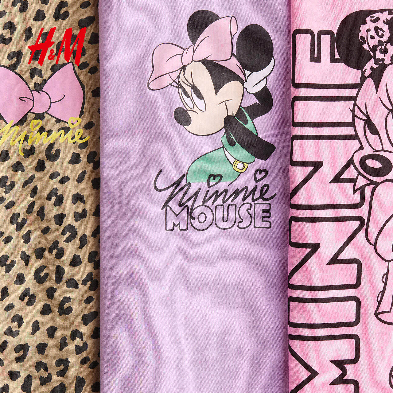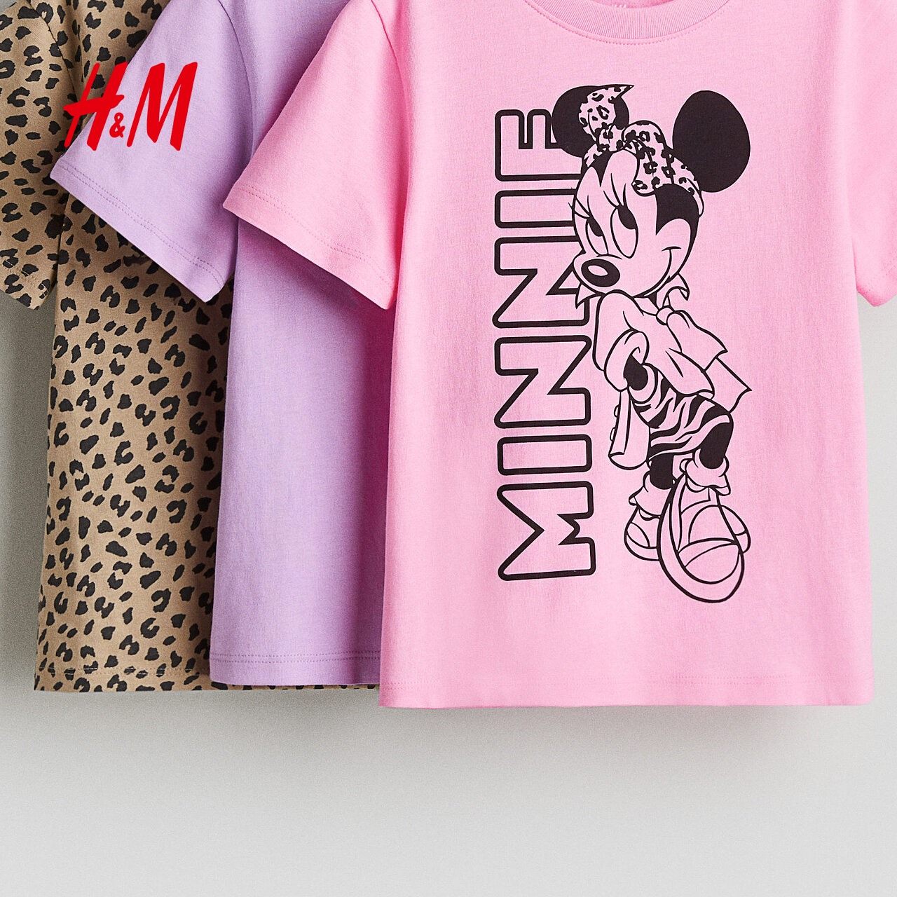 【迪士尼系列】HM童装儿童女童T恤3件装米妮印花圆领短袖0937175