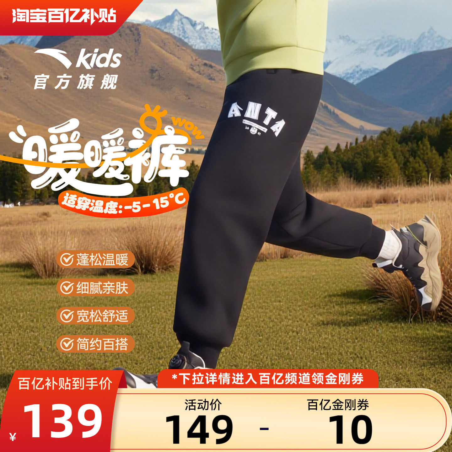 安踏儿童男童加绒加厚裤子秋冬款2025冬季新款棉裤长裤卫裤运动裤