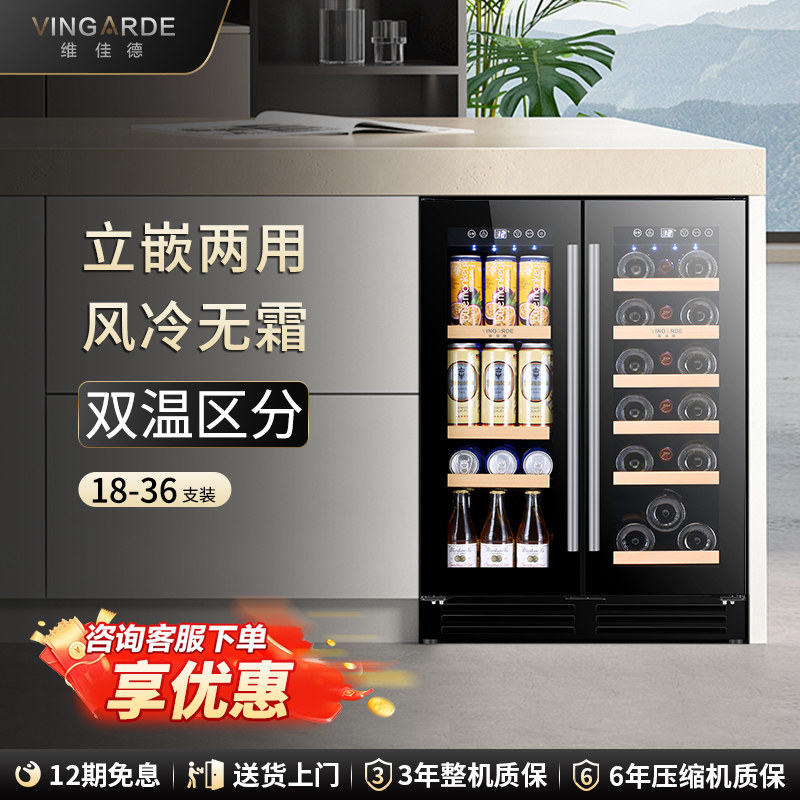 维佳德CH-55嵌入式红酒柜家用双温双门冰吧冷藏柜恒温恒湿红酒柜