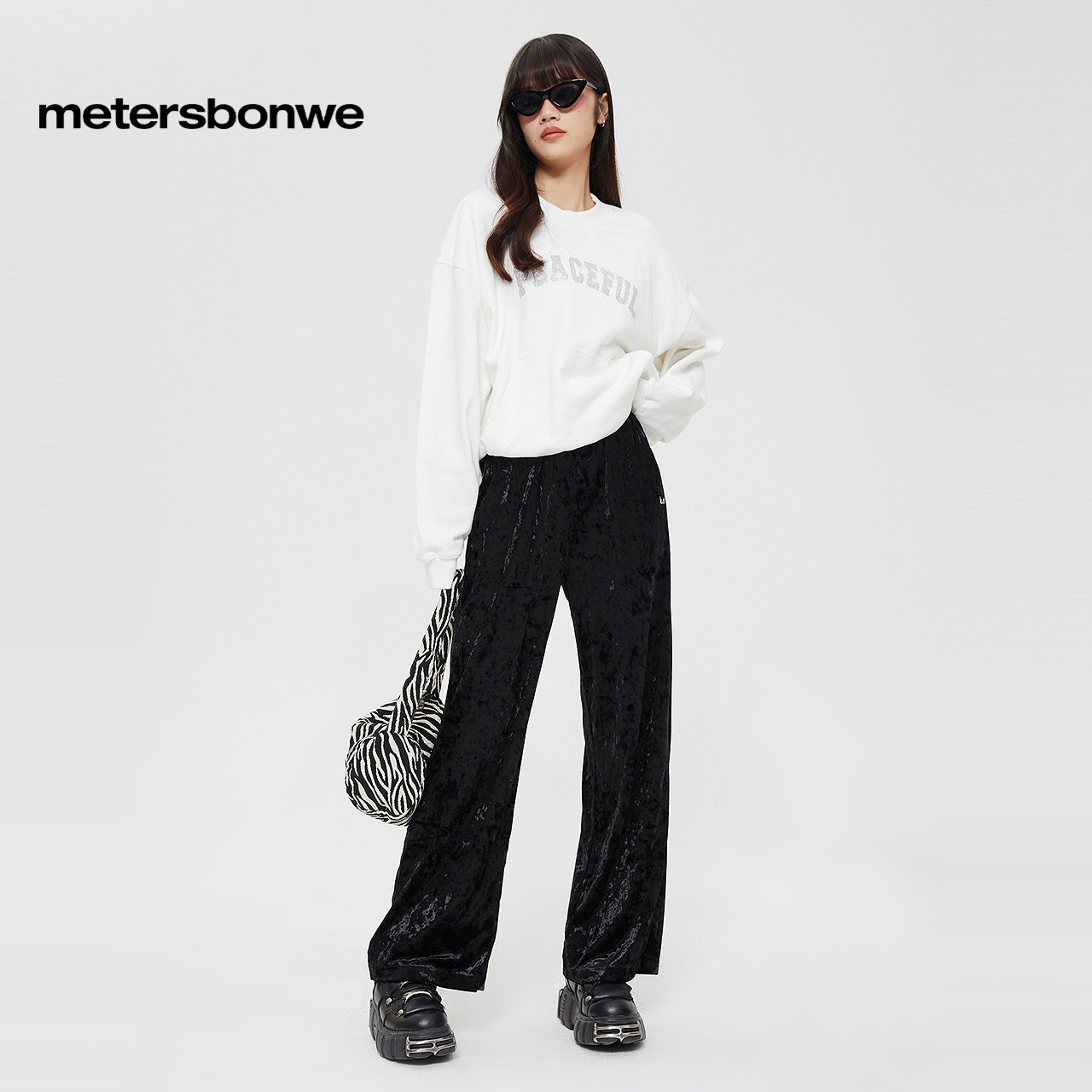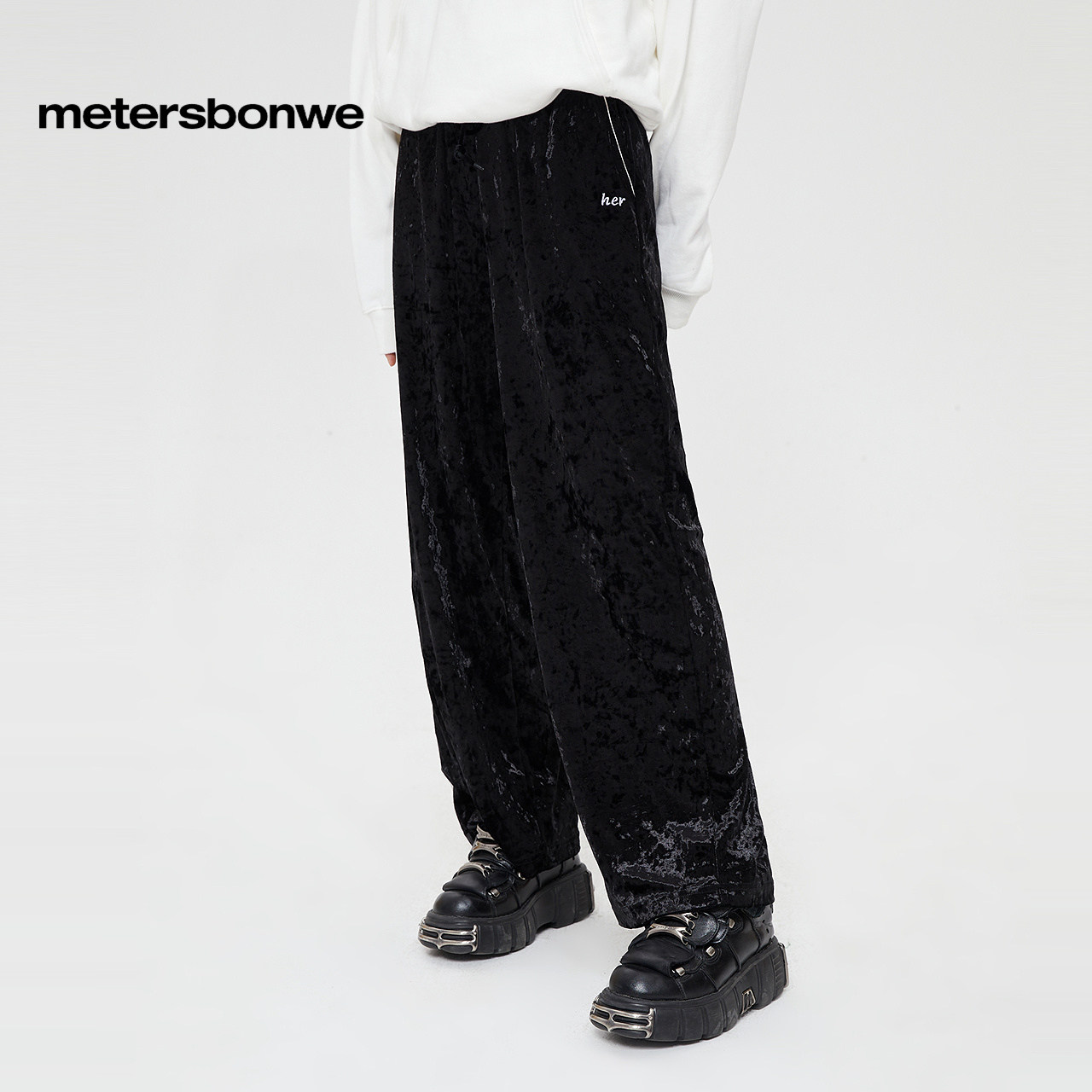 美特斯邦威潮流休闲裤女春季新款休闲长裤阔腿裤时尚甜美高腰下装