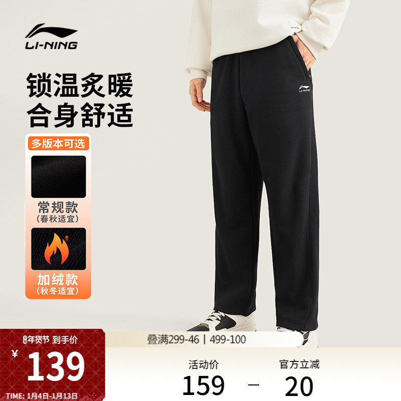 李宁热力裤丨卫裤新款男冬季黑色裤子直筒休闲裤加绒针织运动裤