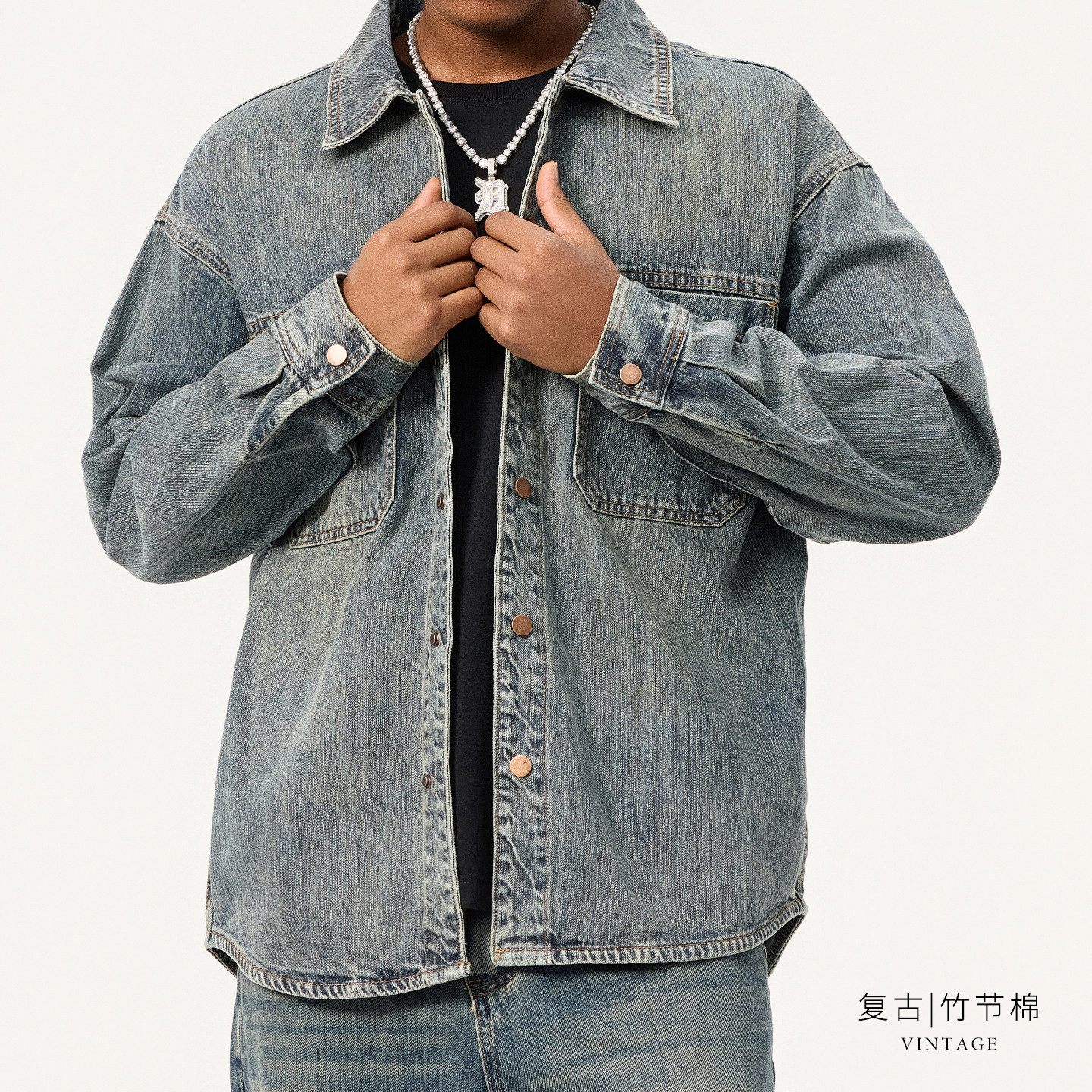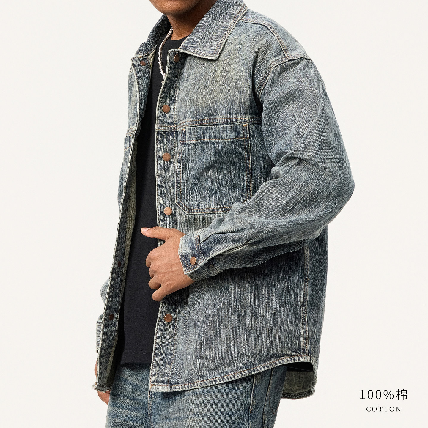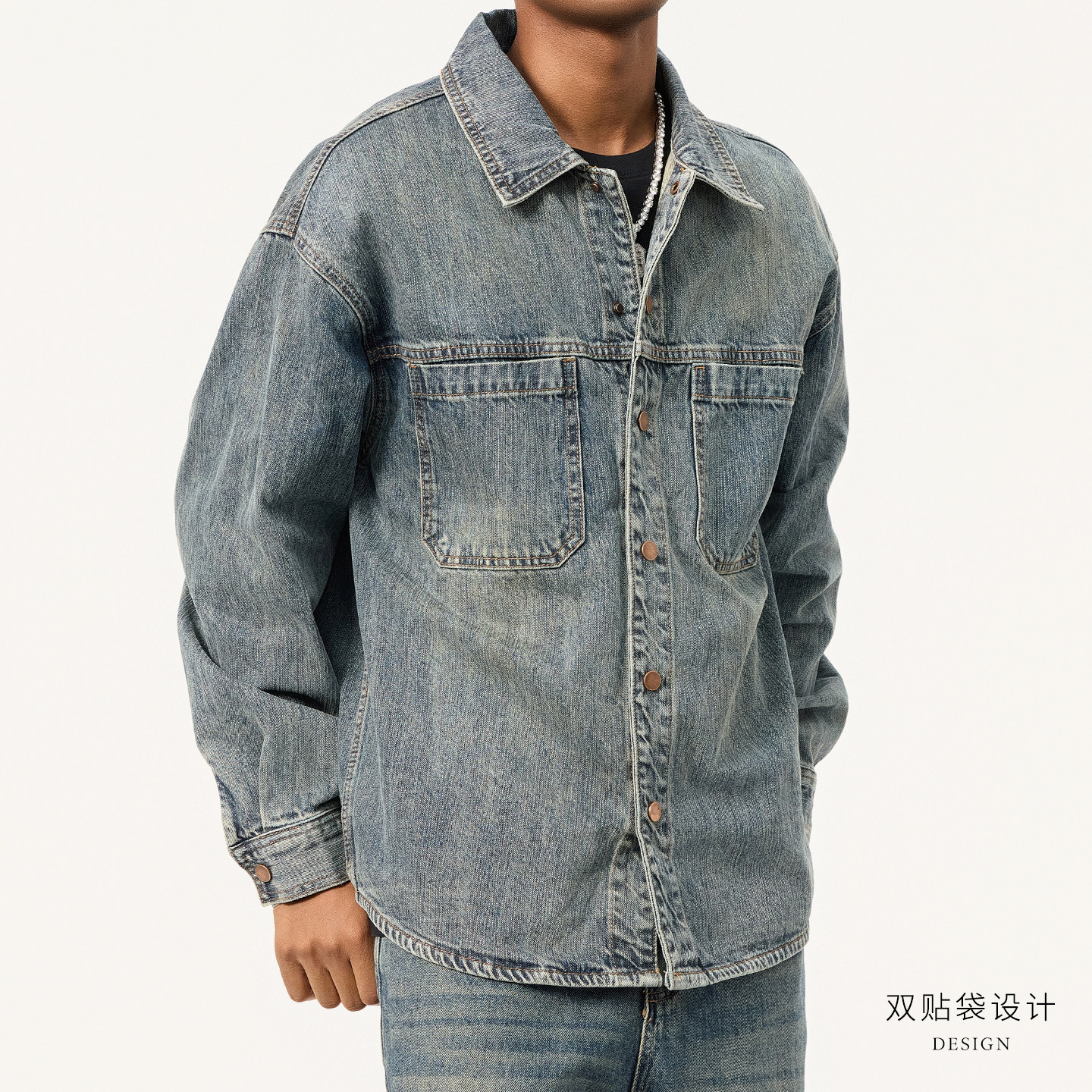 JIELNSELN简圣秋冬牛仔衬衫男新款翻领休闲上衣高级男装百搭外套