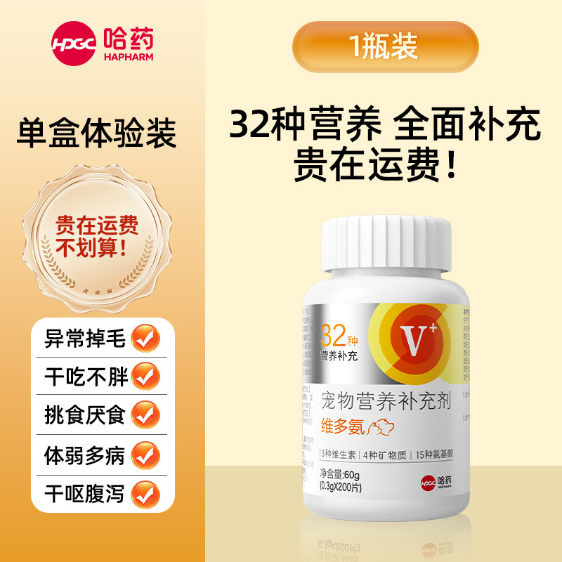 哈药宠物复合维生素猫咪咀嚼片狗狗vc片官方复合维生素b族防掉毛