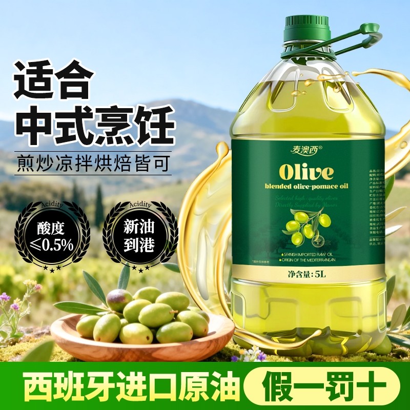 西班牙进口食用油5L取油橄榄果油含特级初榨低健身脂炒菜官方正品