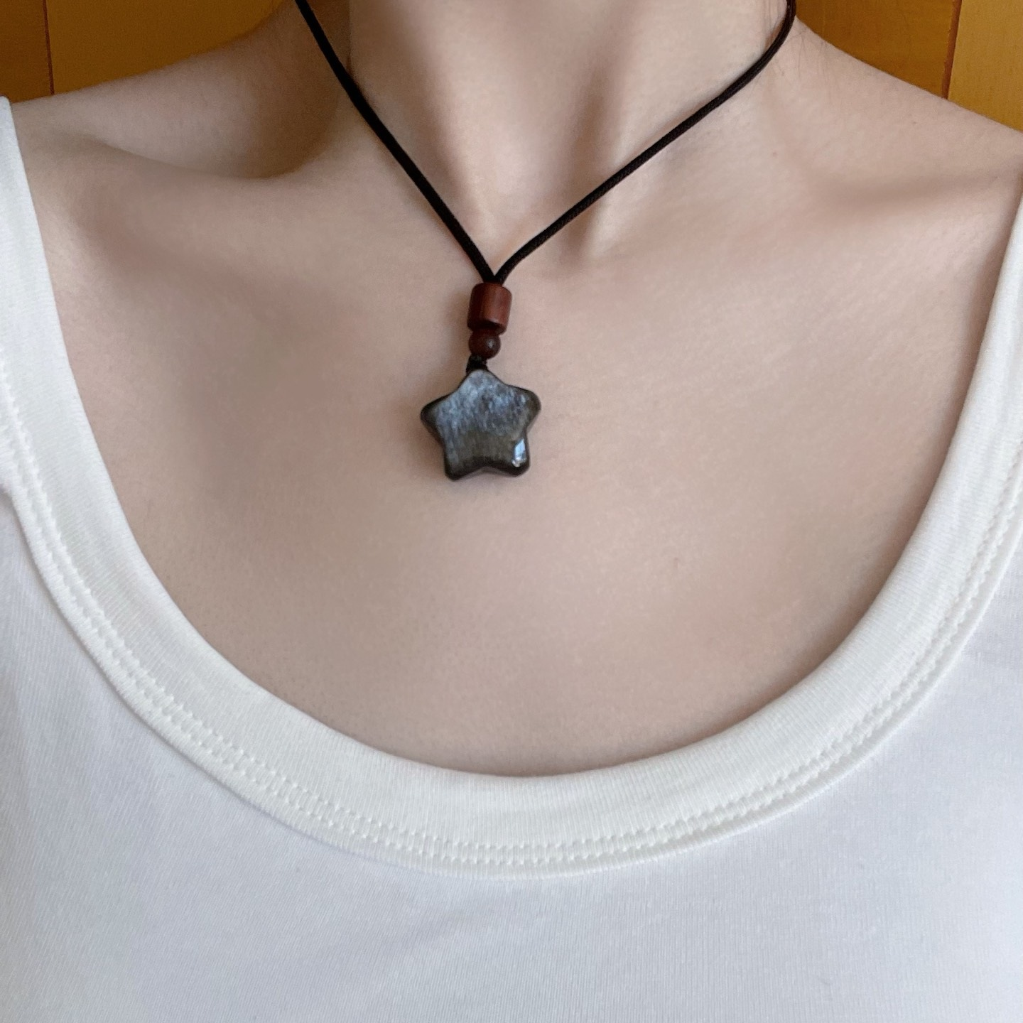 天然黑曜石银曜石星星情侣项链复古可调节水晶挂坠新中式闺蜜