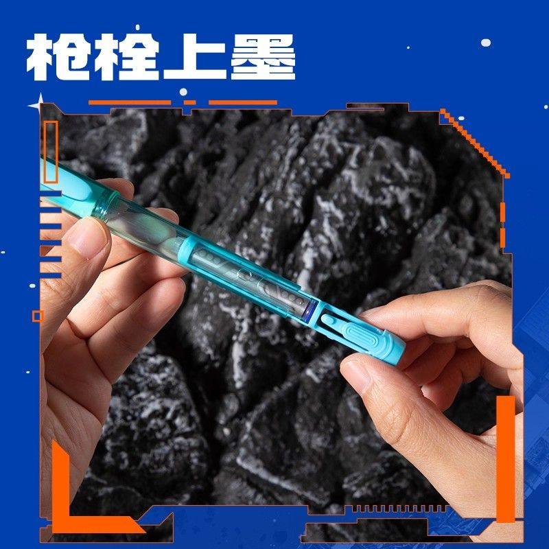 得力新款易水洗墨囊练字钢笔六边形战士脉冲尖兵学生用晶蓝EF明尖