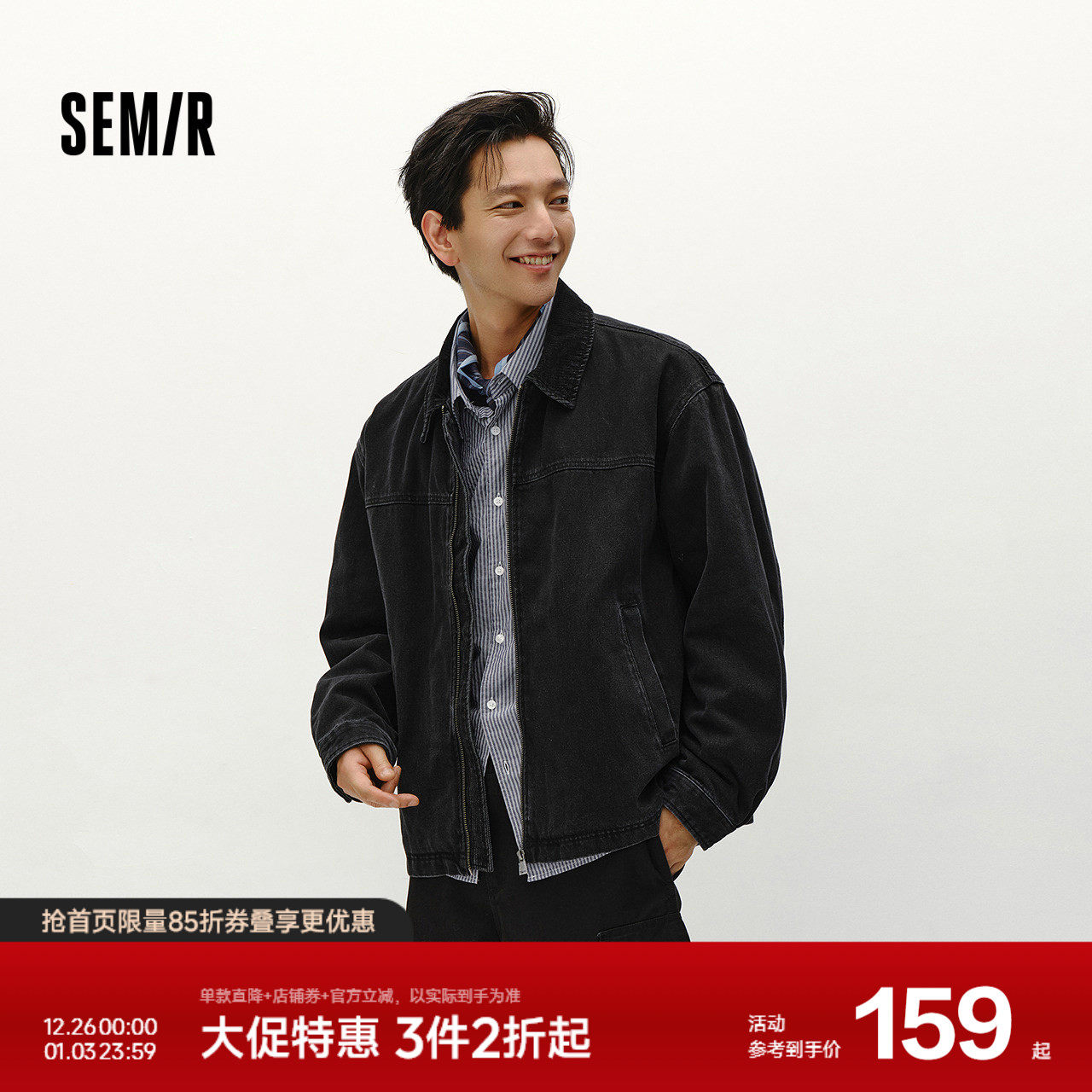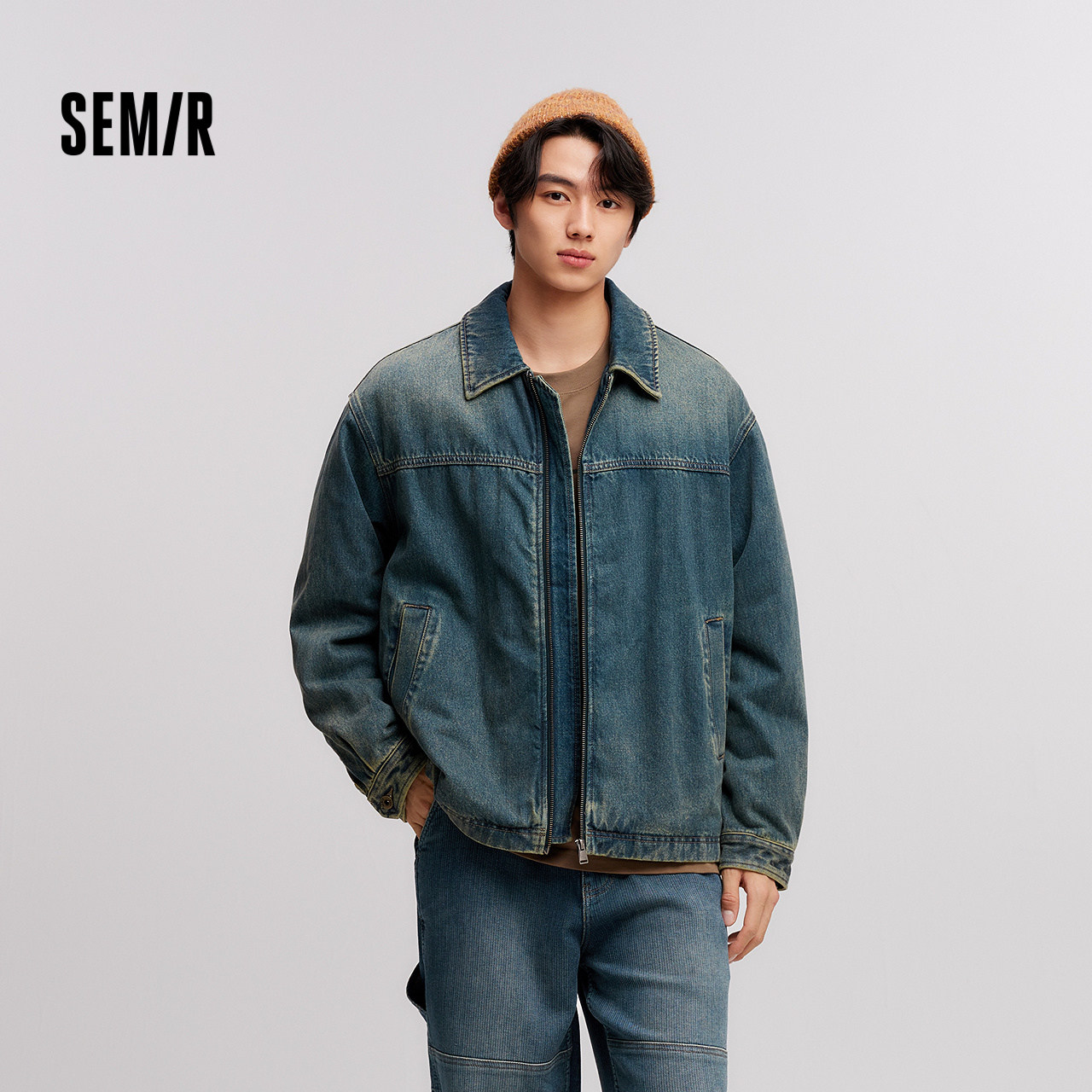 森马夹克男冬宽松痞帅美式复古水洗牛仔外套时尚百搭棉服拉链开衫
