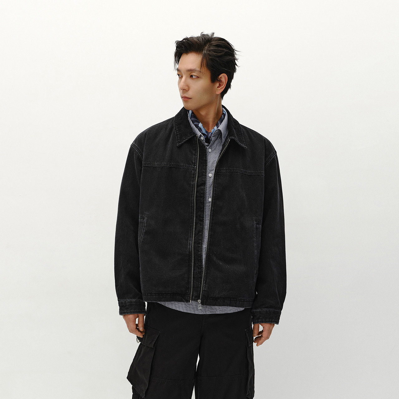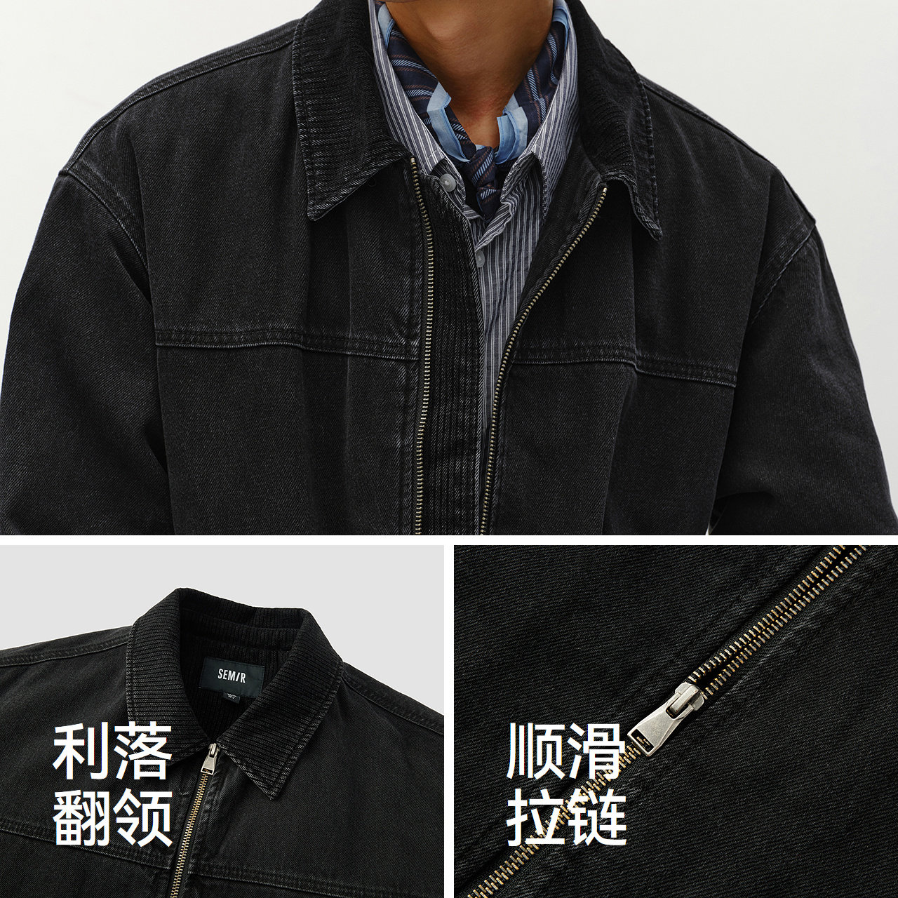 宽松牛仔外套 棉服拉链开衫 美式复古