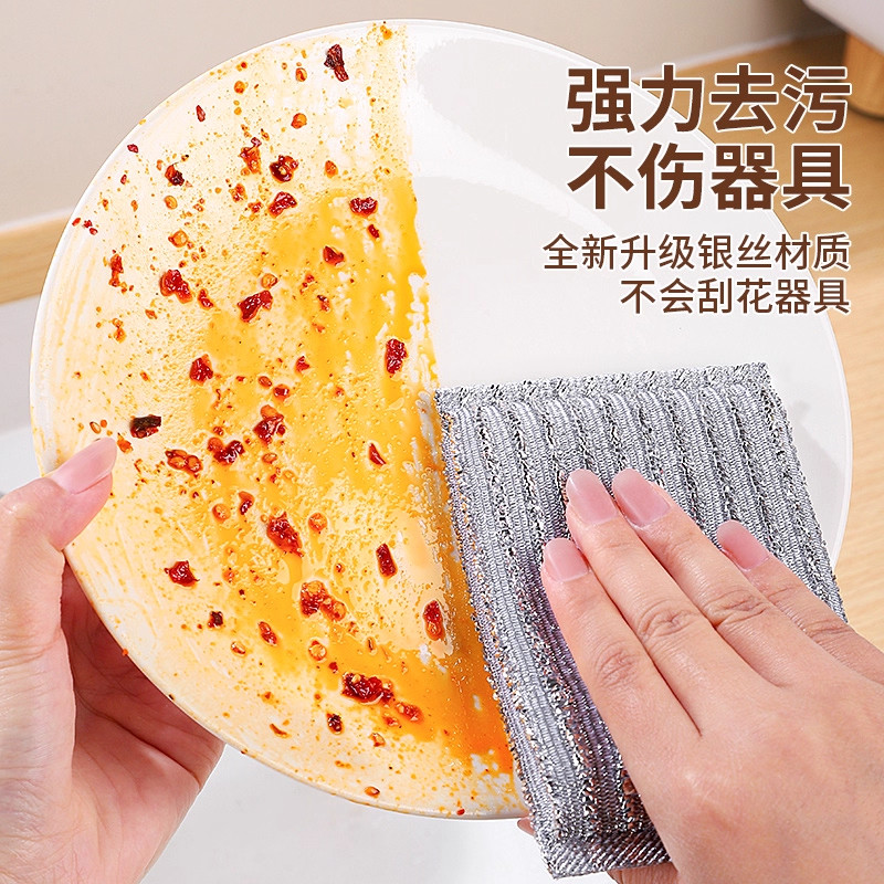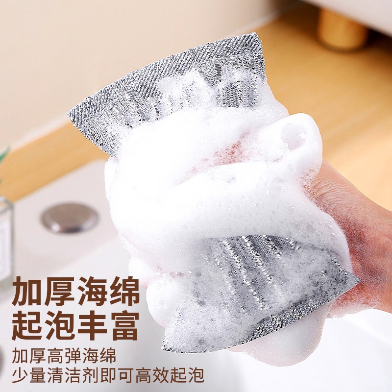 洗碗海绵钢丝洗碗布清洁不沾油厨房专用双面加厚银丝抹布刷锅神器