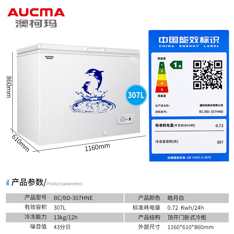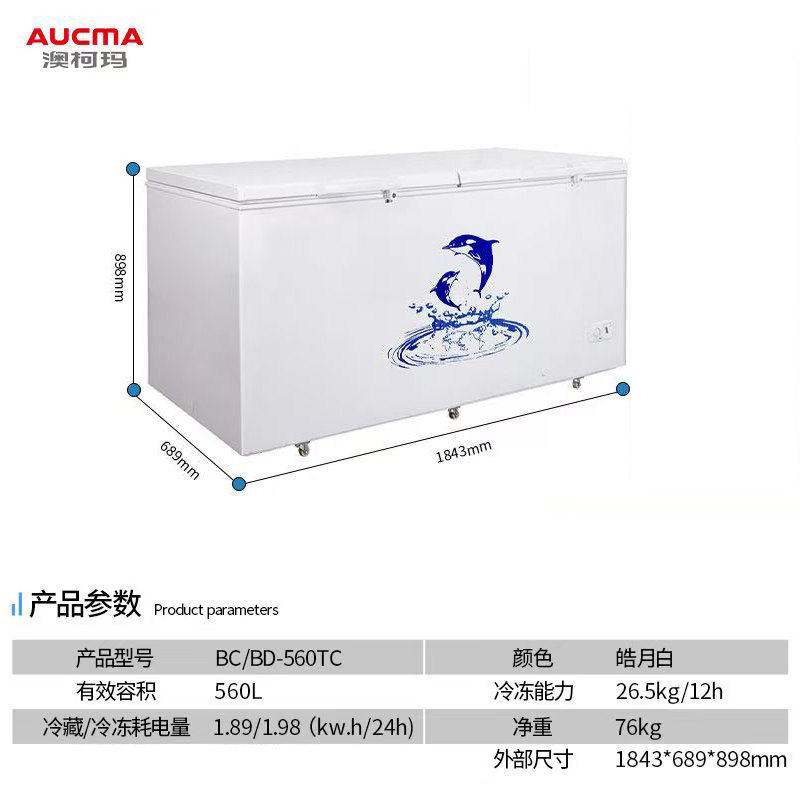 澳柯玛308/323升冰柜商家用大容量冷冻冷藏单温卧式减霜冷柜一级