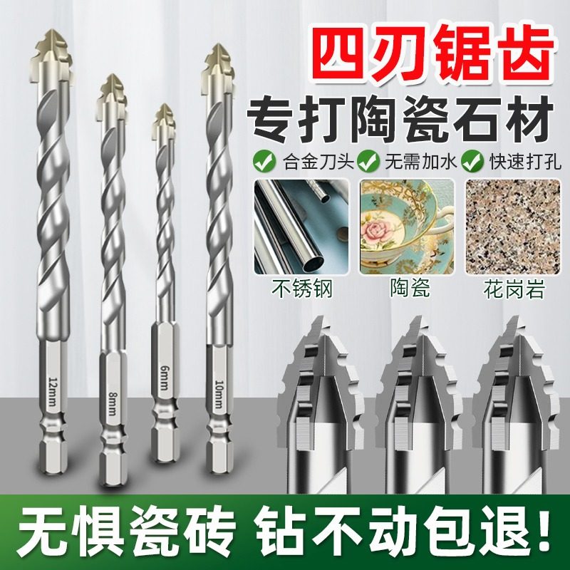 四刃锯齿偏心瓷砖打孔钻头混凝土超硬专用电钻高硬度干打霸王钻孔