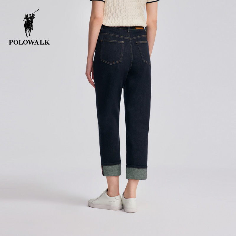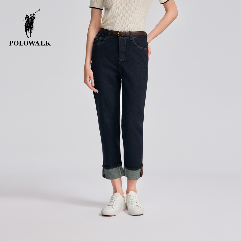 POLOWALK女装2025秋季新品女式牛仔裤时尚翻边通勤百搭长裤女款