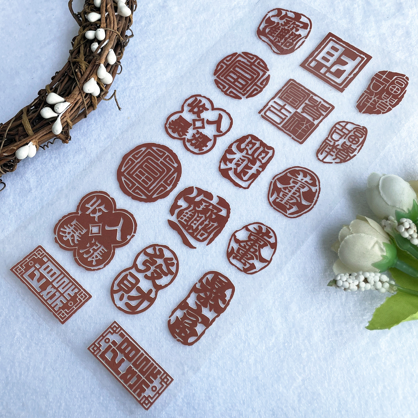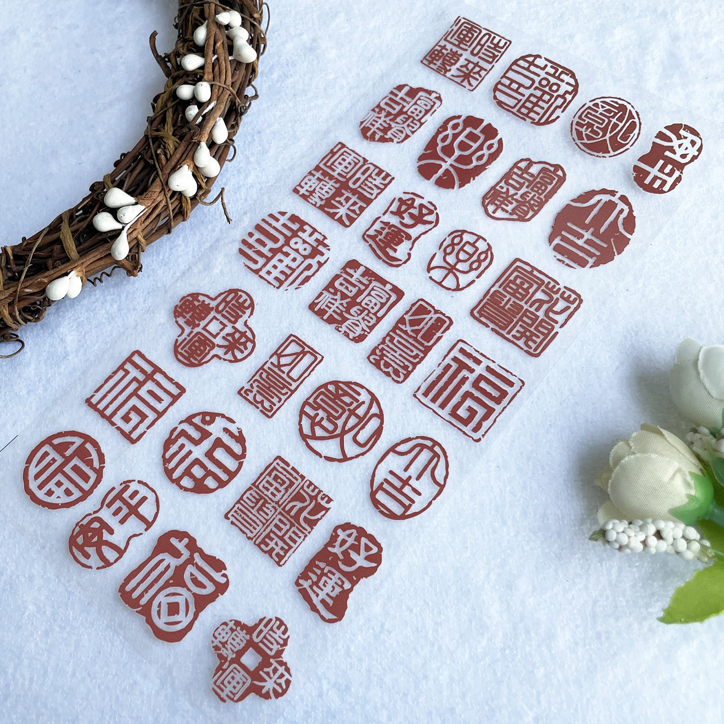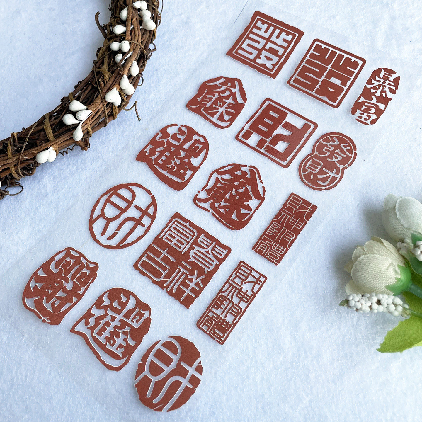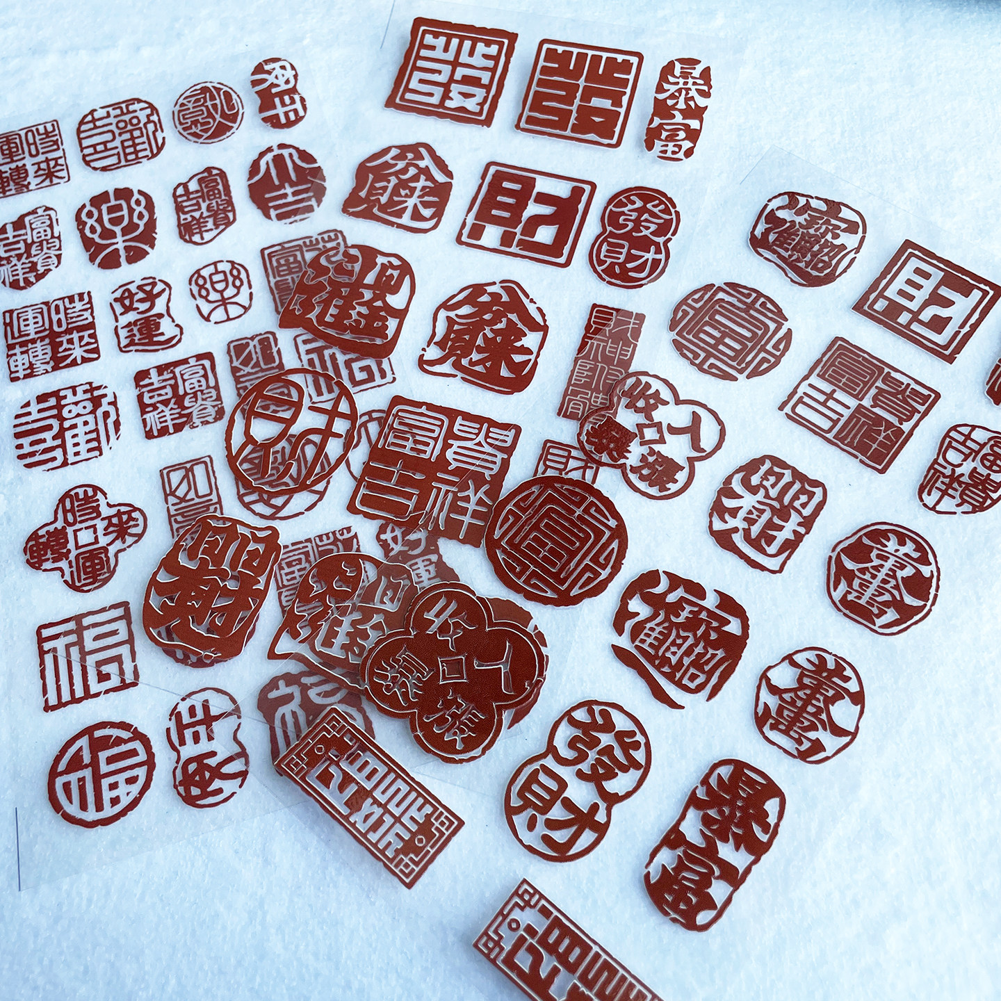 中国传统印章发财镂空手账贴纸转印贴纸自粘装饰小图案卡通不干胶