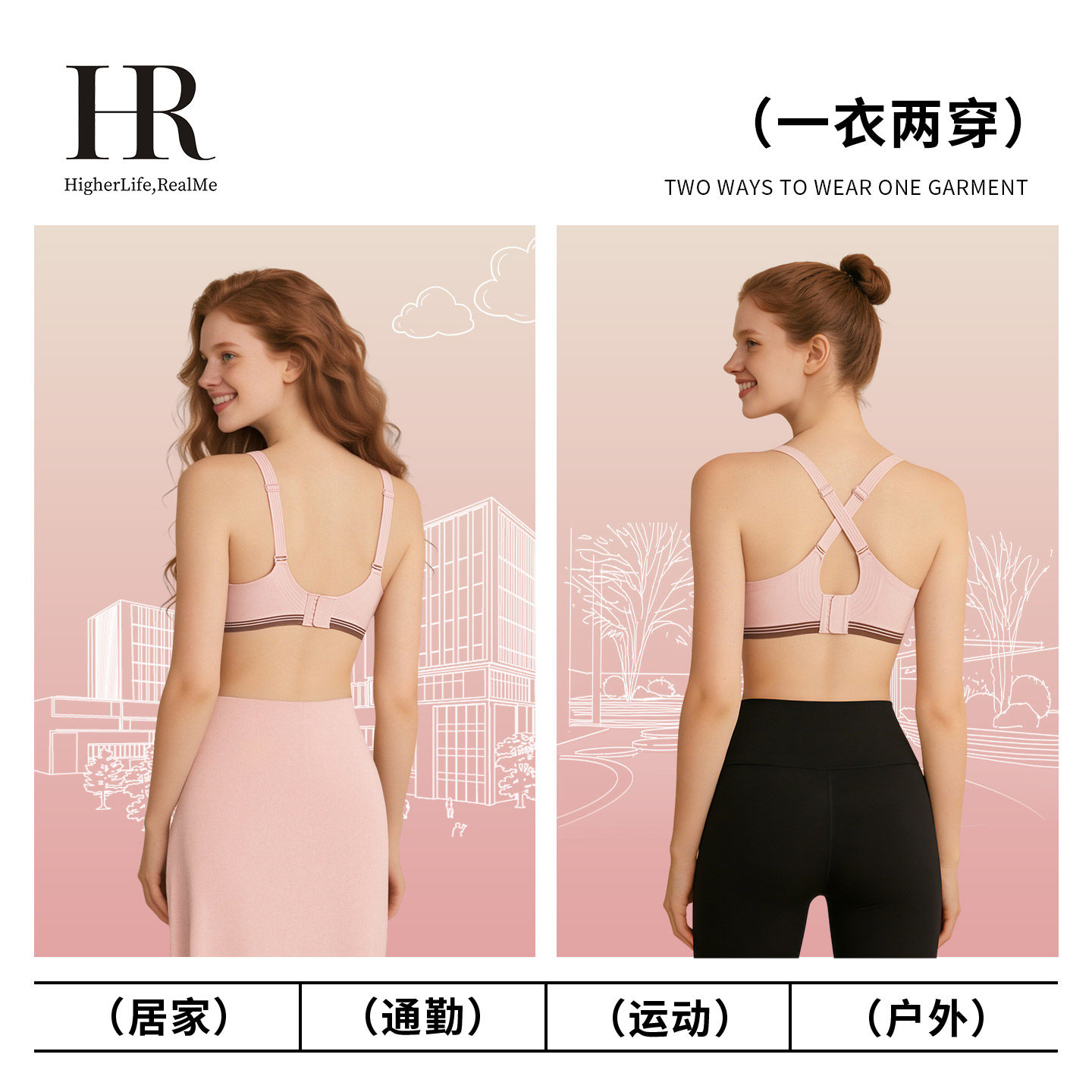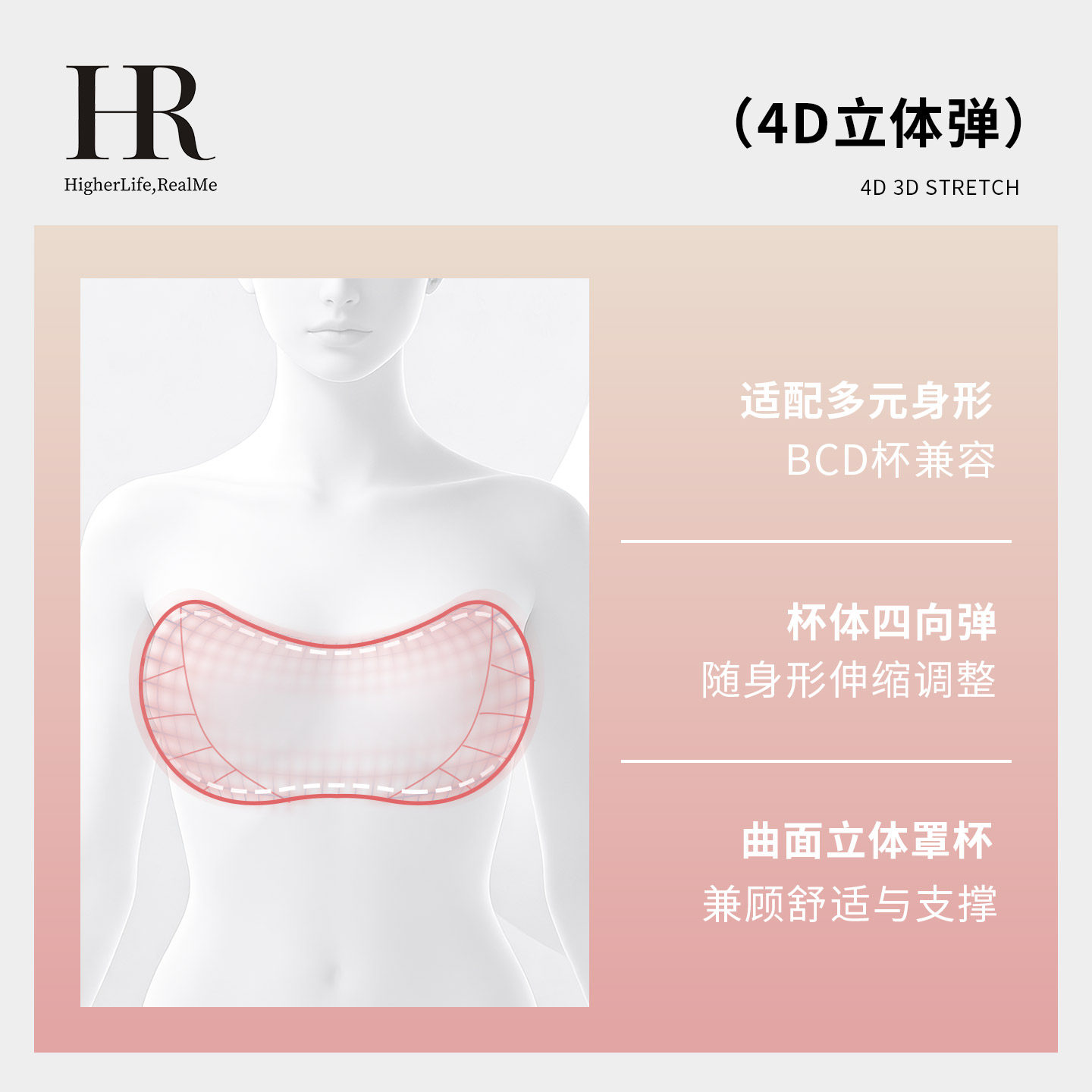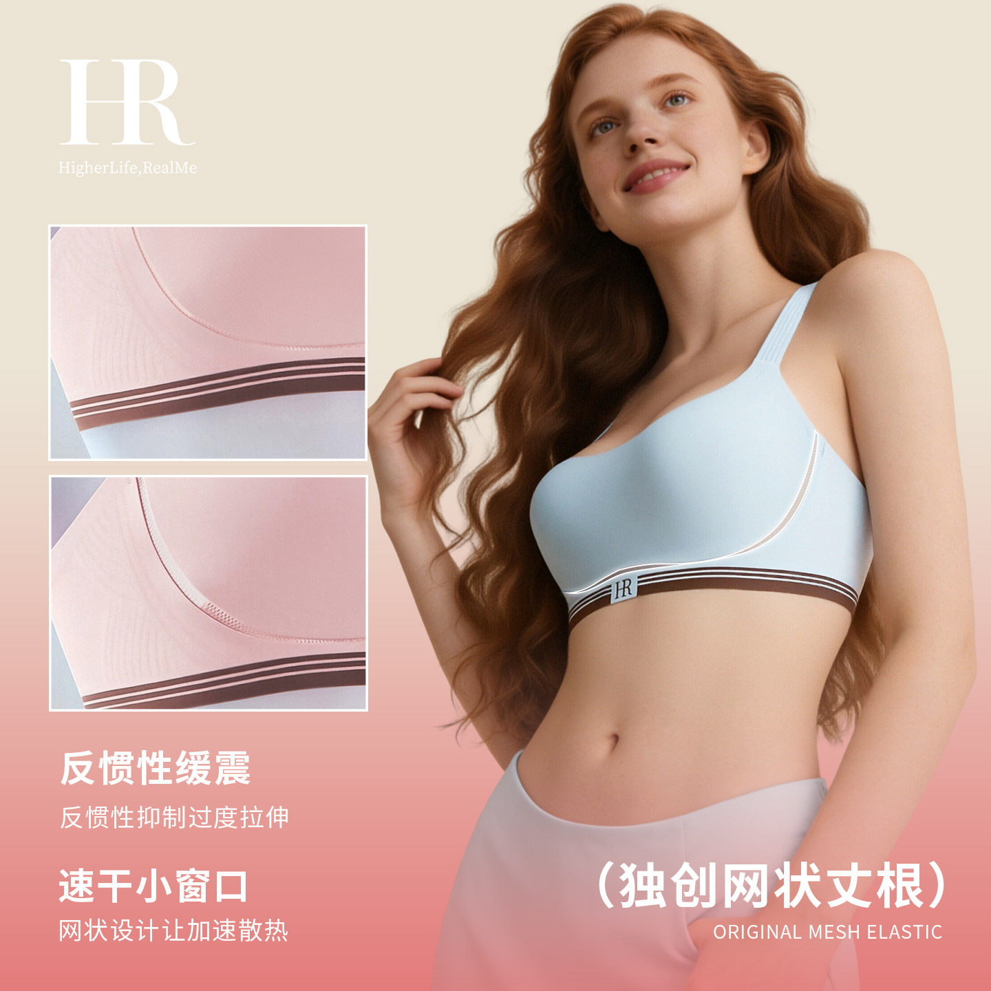 HR赫莲娜一体杯大胸显小内衣三重提拉塑形防下垂美背聚拢文胸女