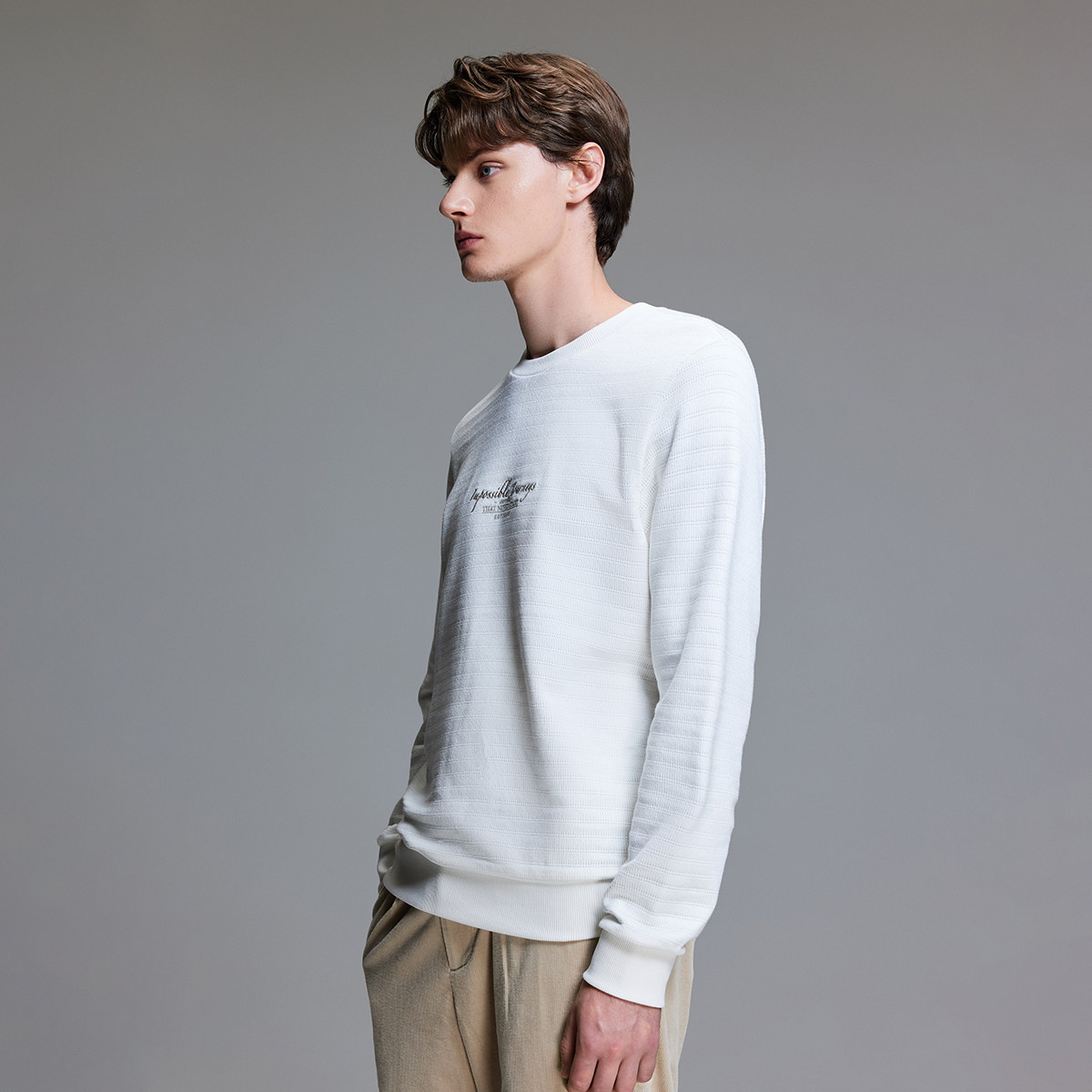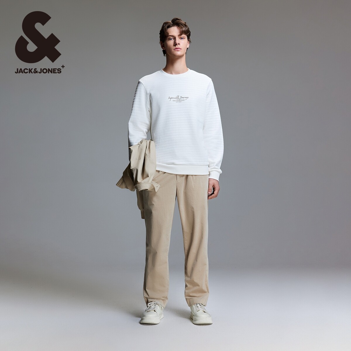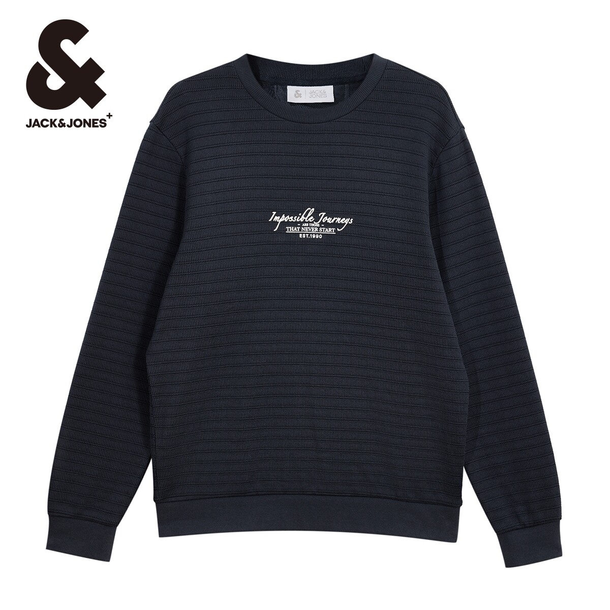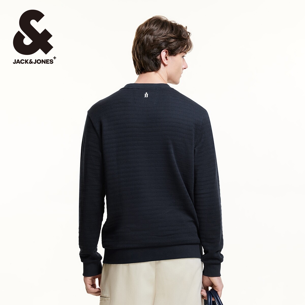 杰克琼斯秋季新款纹理感针织面料舒适基础字母刺绣长袖卫衣男装
