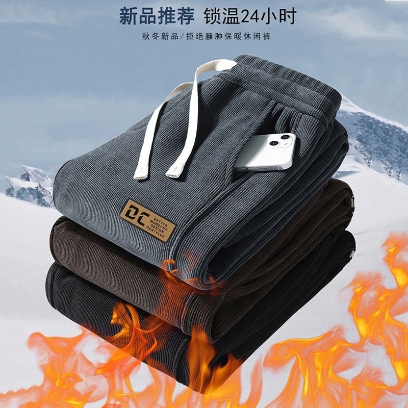 新款爸爸冬装灯芯绒裤子男加绒加厚中年男士冬季保暖休闲裤中老年
