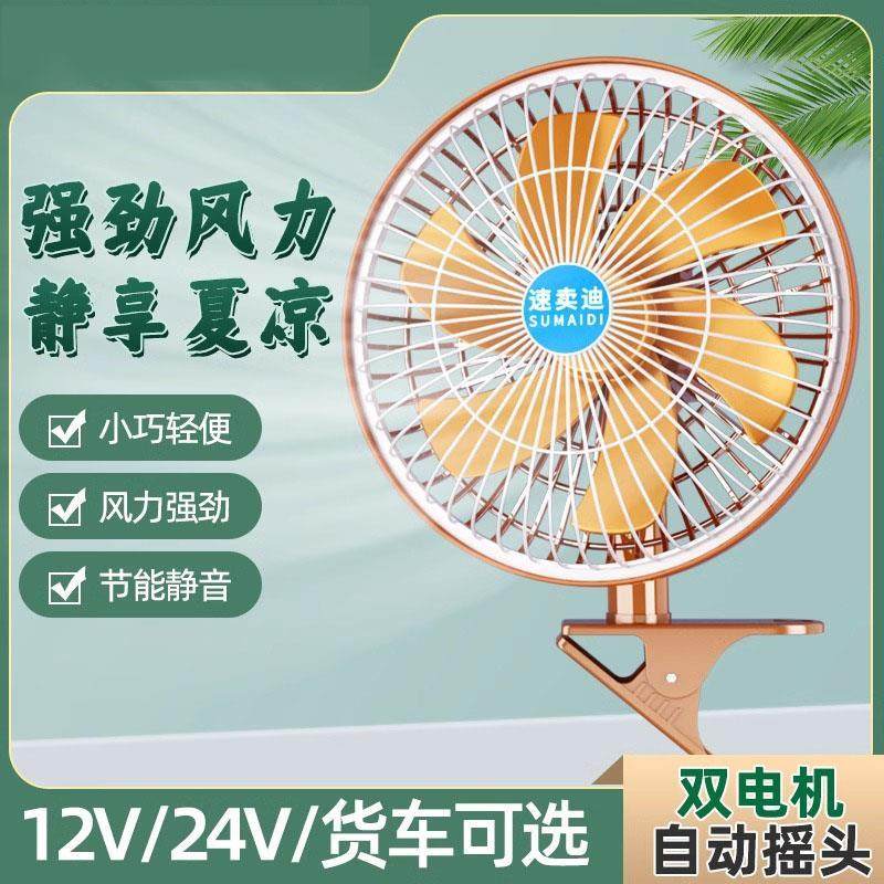 车载电风扇24v大货车专用静音大风力摇头汽车用12伏通用强力制冷