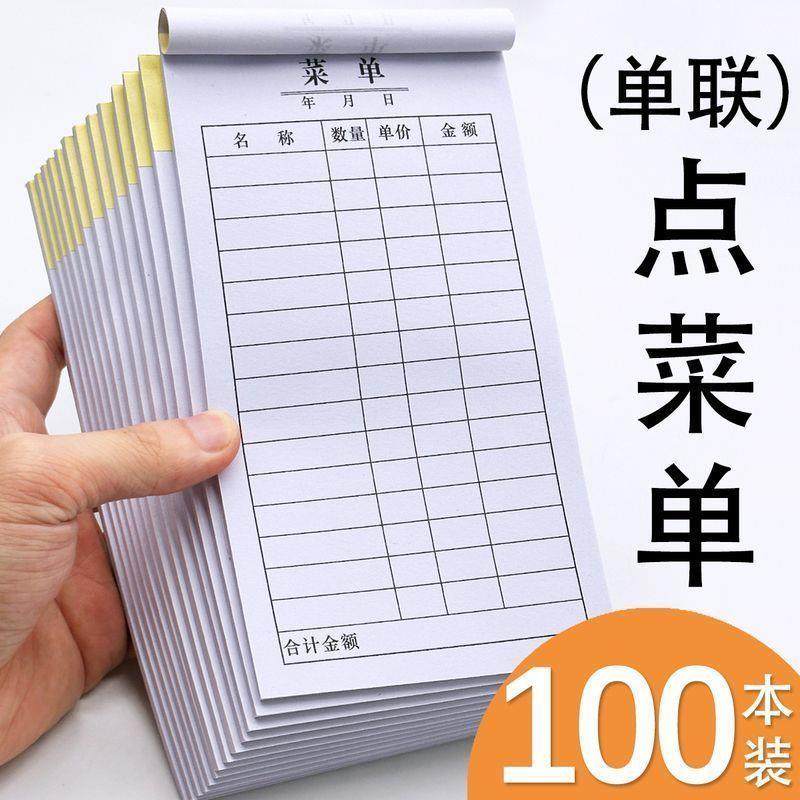 100本点菜单一联菜单单联菜单点菜单烧烤餐厅饭店菜单本不带复写