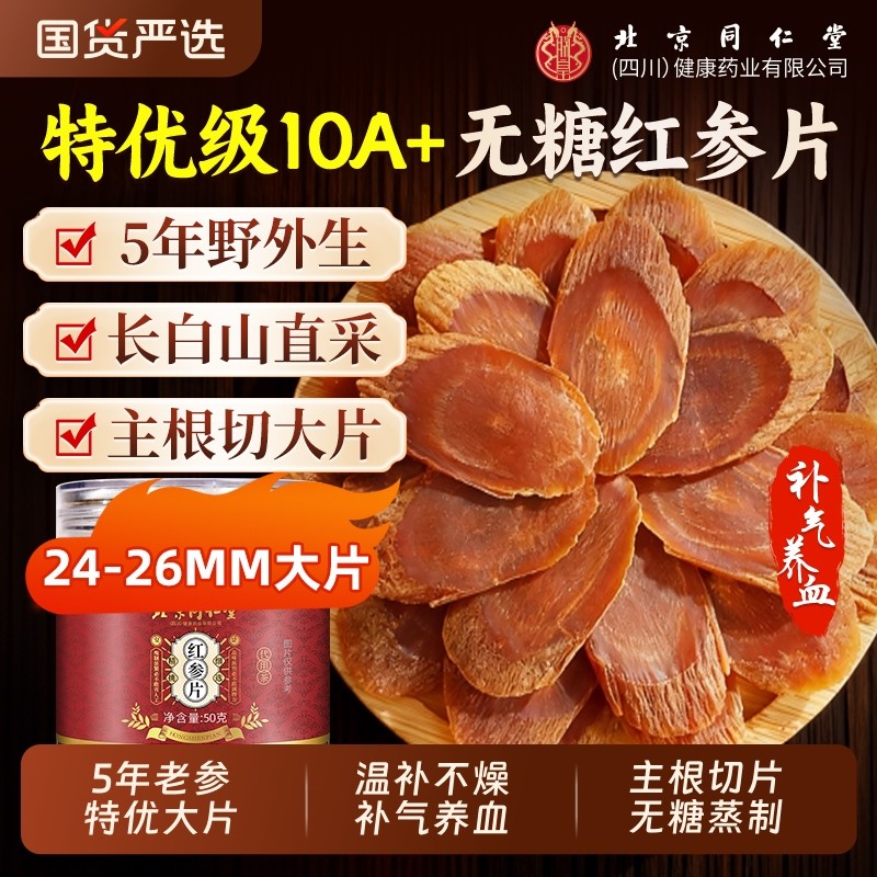 北京同仁堂长白山红参片正品官方旗舰店中药材人参高丽参补气养血