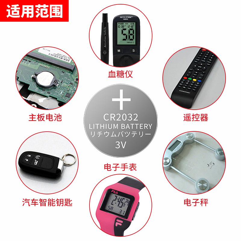 适用于CR2032电子秤电池家用厨房烘焙计算器闪光灯条电池CR2025体重秤人体电子称体脂精准CR2016体重秤3V锂电