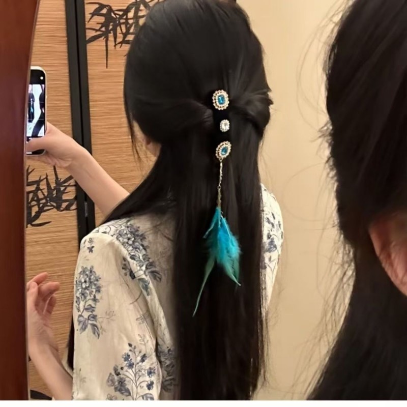 「青翎曳风」复古民族风羽毛发夹云南丽江拍照鸭嘴夹发卡仙气发饰