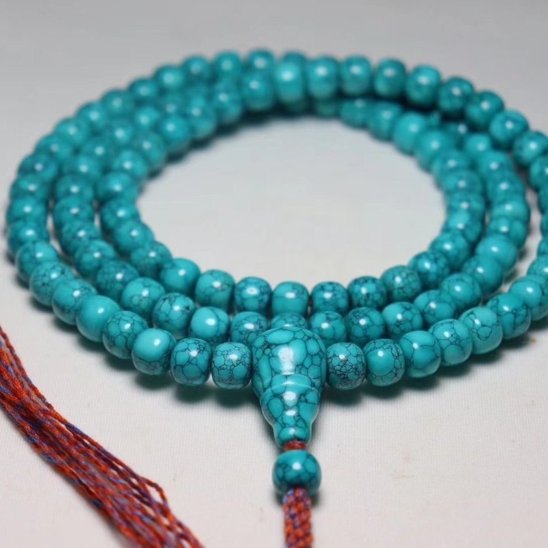 科技绿松石水草纹网花老型108颗仿松石筒珠三通一体佛珠项链手链