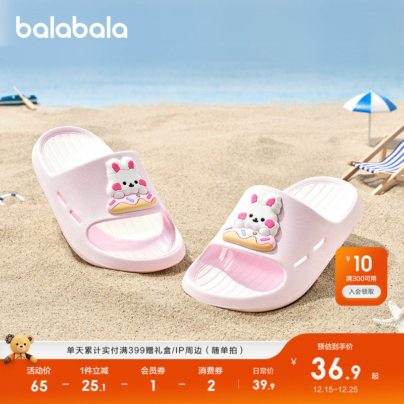 巴拉巴拉儿童拖鞋夏季2025新款居家男童女童舒适童鞋简约防滑卡通