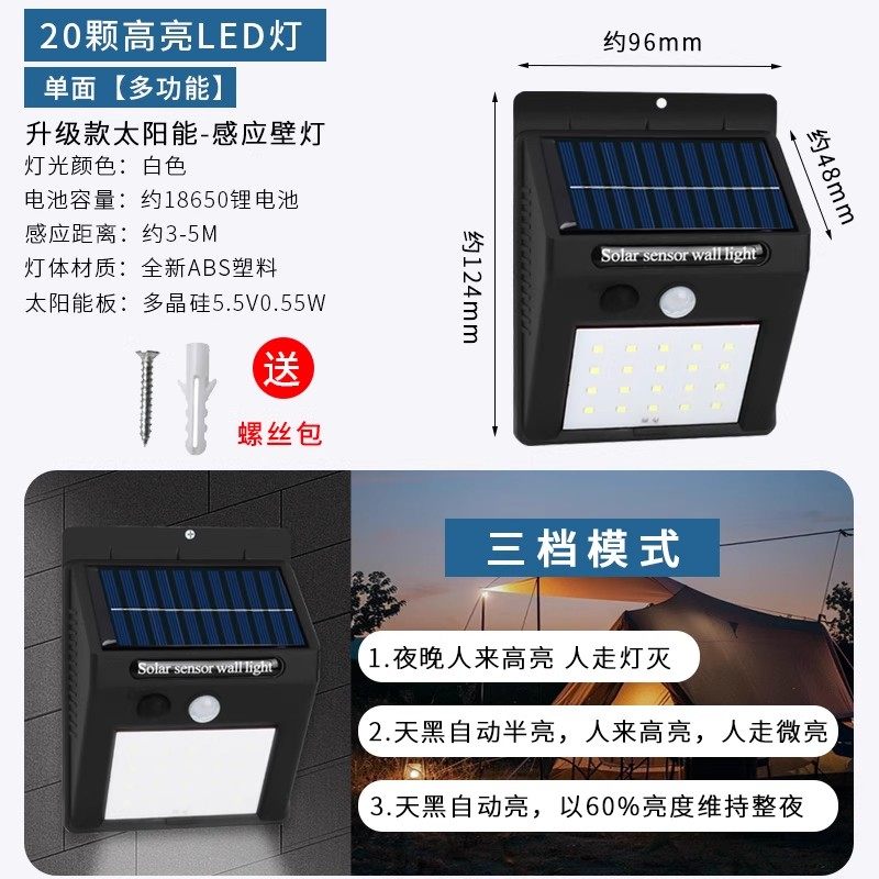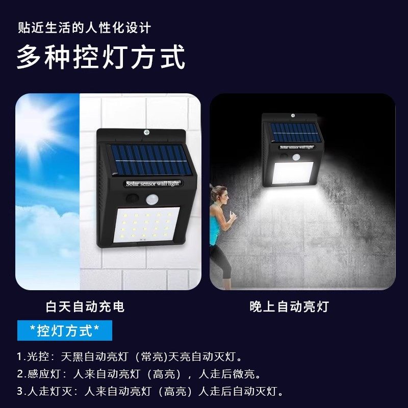新款太阳能庭院门口家用照明人体感应农村院子室外阳台防水壁灯