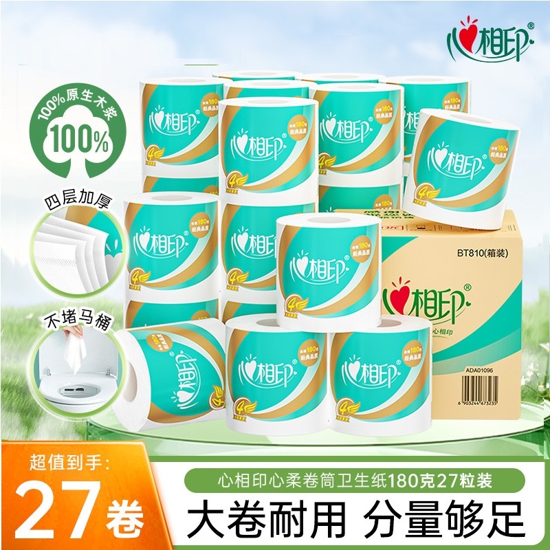 心相印心柔卷纸家用纸巾四层加厚大卷纸厕纸卷筒卫生纸180克27卷