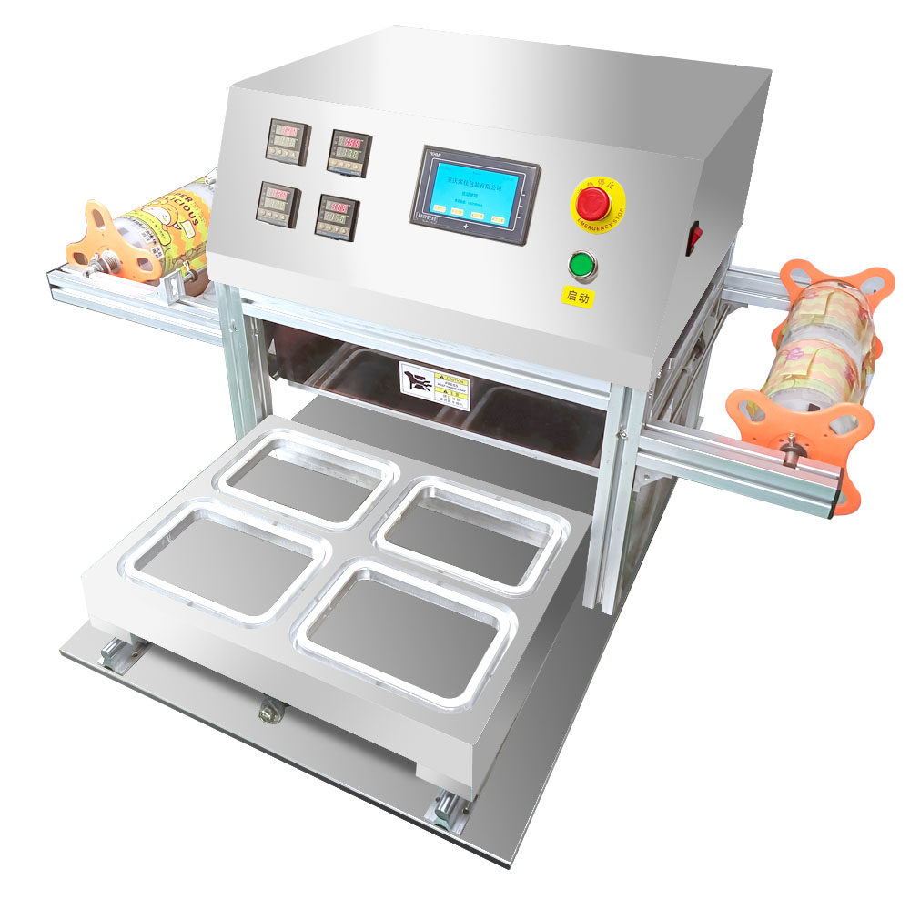 定制全自动真空充氮气锁鲜装塑料盒封口机方便菜圆碗酸奶杯封膜机