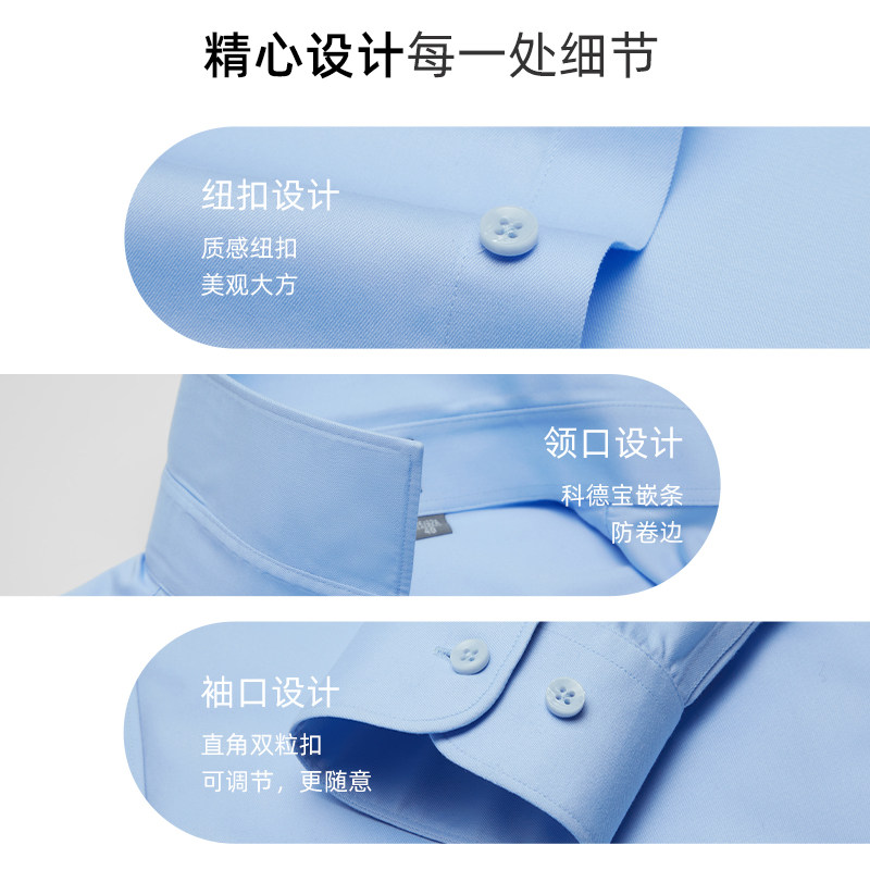 七多男士衬衫修身韩版秋季商务免烫纯色衬衣职业正装白衬衫男长袖