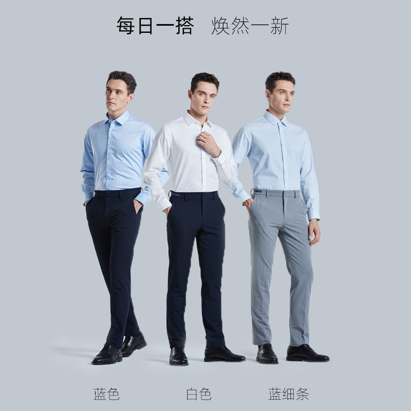 【清仓】杉杉品牌男士长袖衬衫纯色2025春季新款休闲免烫纯棉衬衣