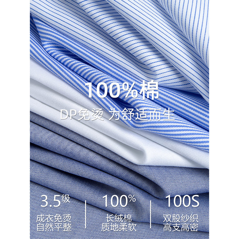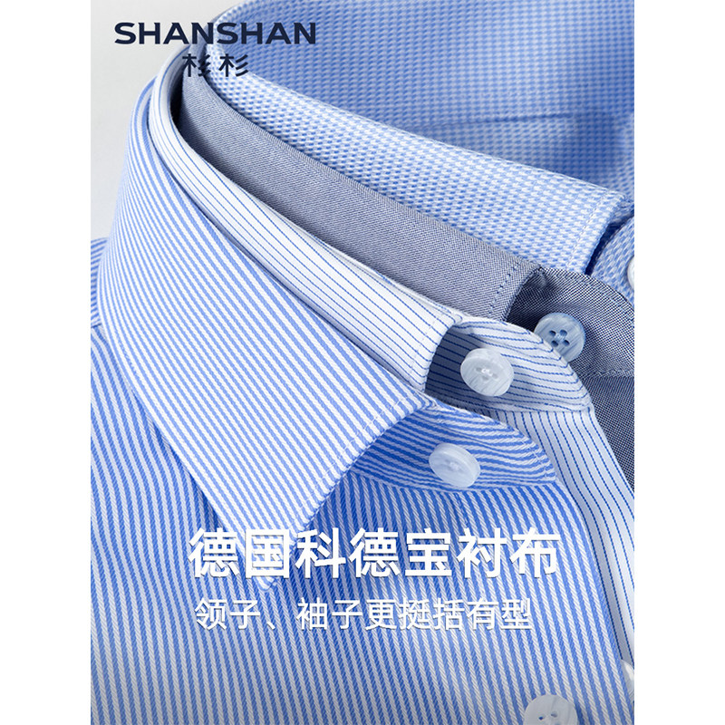 【DP免烫】SHANSHAN杉杉纯棉格子长袖衬衫男士秋季正装白色衬衣男
