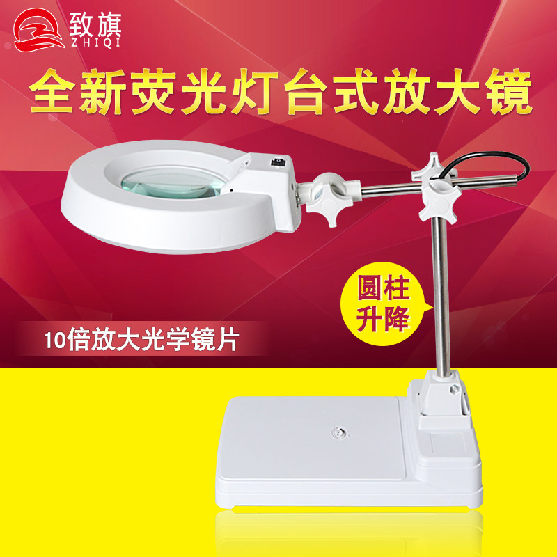 致旗高倍台式放大镜带LED灯10倍老人阅读高清20焊接线路板手机维修台灯工业检测修表专用100特大1000