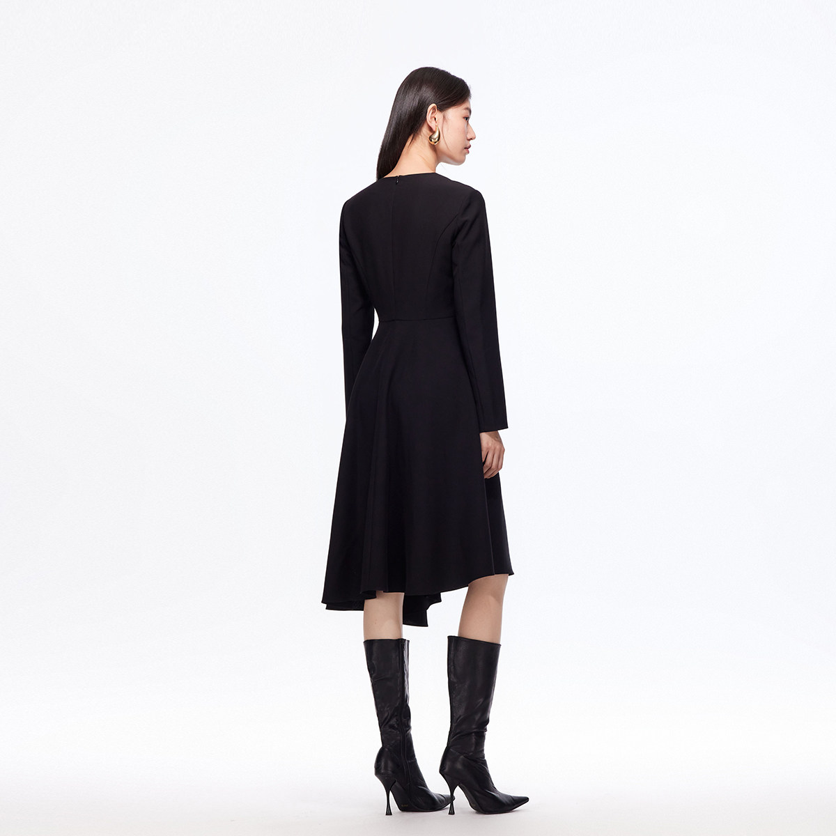 Vero Moda奥莱连衣裙女2025秋冬新款收腰显瘦不规则裙摆小黑裙