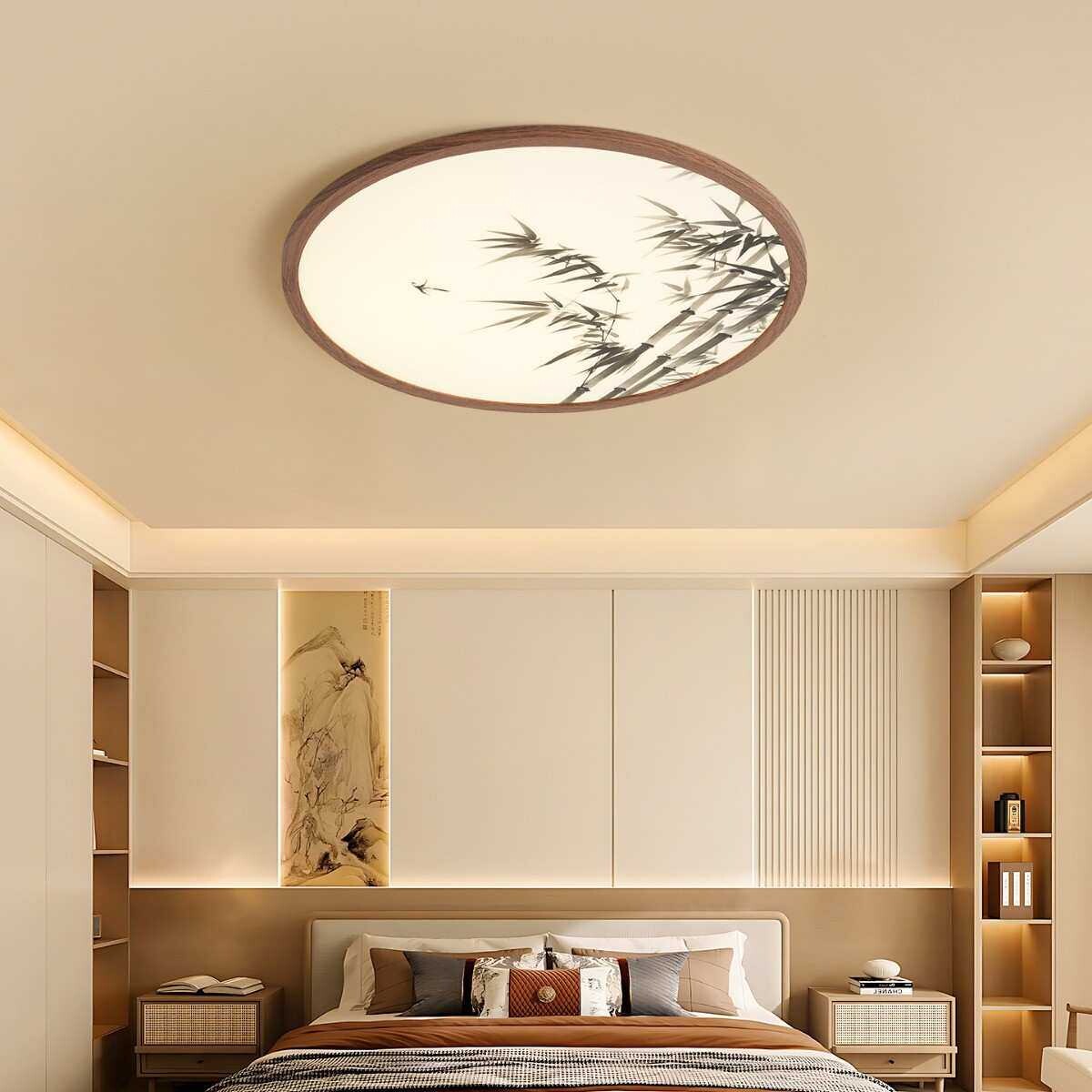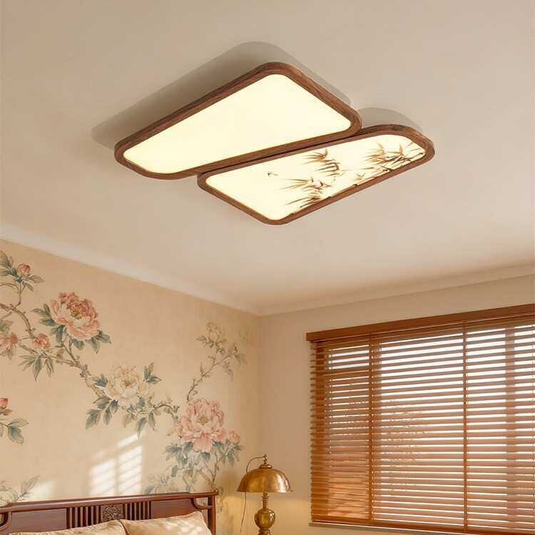 宋代美学卧室灯饰中古风复古胡桃木色主卧灯新中式禅意房间吸顶灯