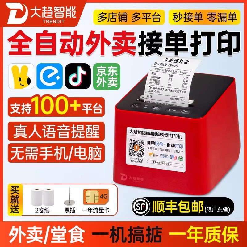 大趋智能适用于美团外卖打印机全自动接单热敏语音切纸票据小票机抖音来客饿了么京东秒送到家餐饮外卖打印机